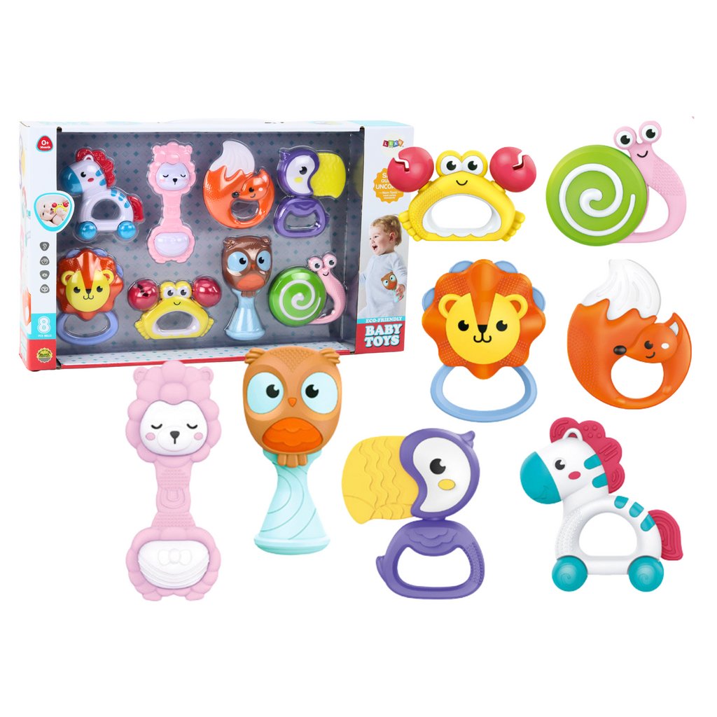 Sada Chrastítek a Kousátek pro Miminka Zvířátka 8 Ks