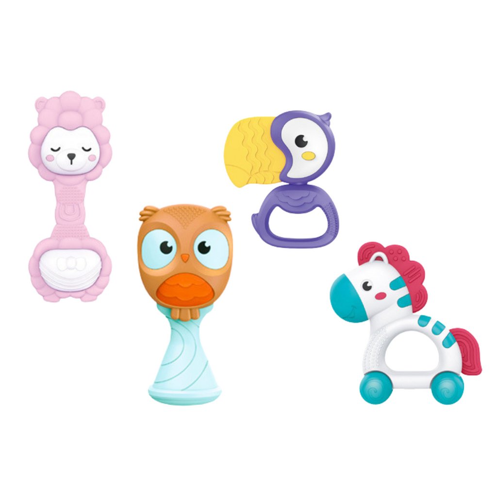 - Objevte radost z hry a pomozte svým dětem rozvíjet jejich smysly se Sadou Chrastítek a Kousátek pro Miminka Zvířátka