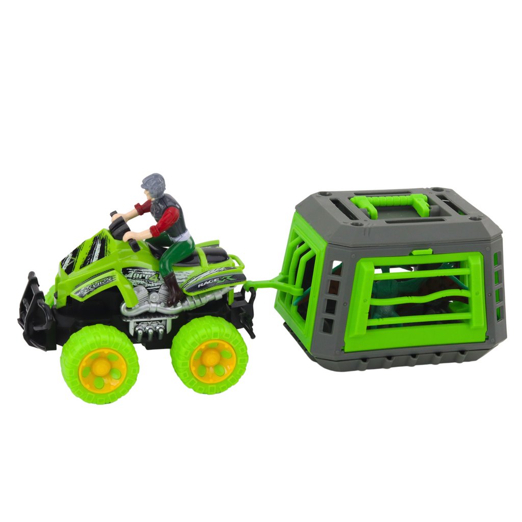 - Barevná čtyřkolka s výraznými koly je připravena na každé dobrodružství a díky pohyblivé kleci se vaše děti mohou stát lovci prastarých tvorů