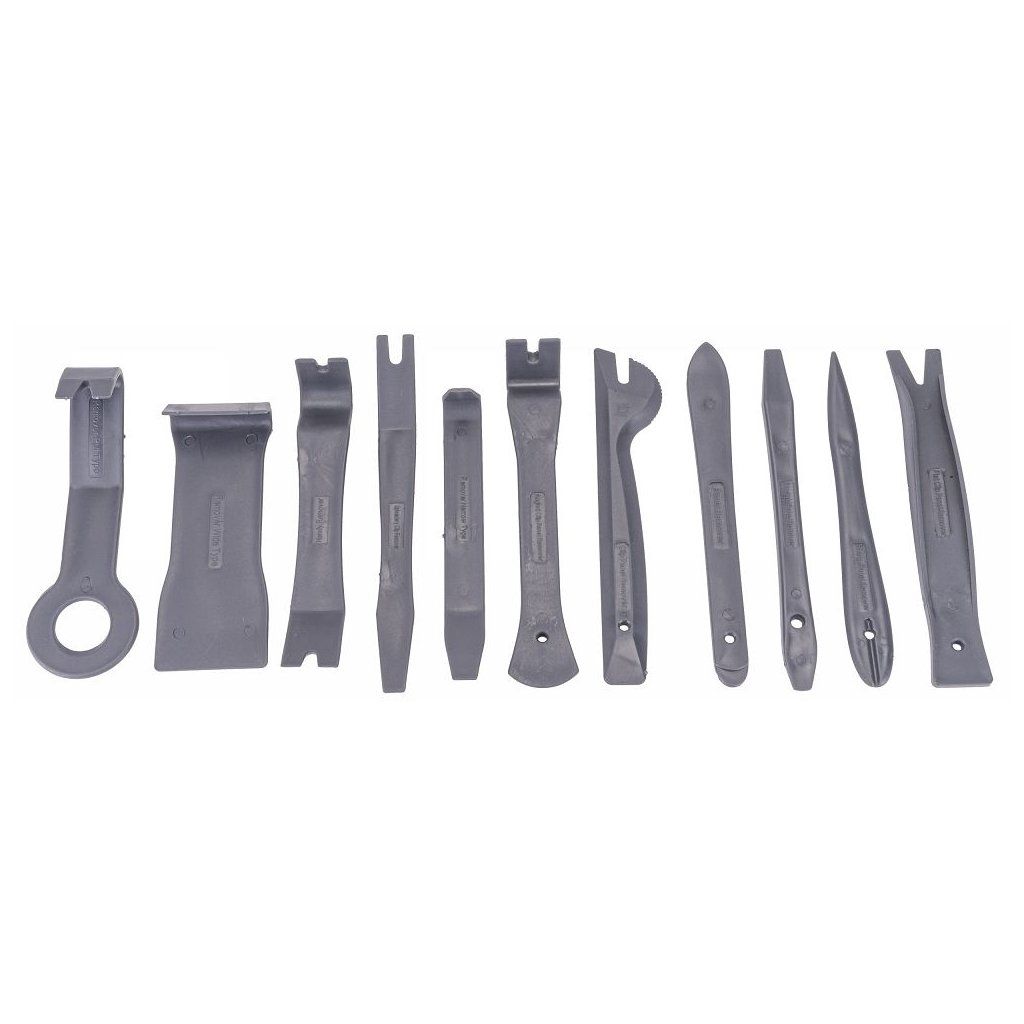 Bezpečná demontáž interiérových prvků bez poškození. Sada obsahuje 11 různých nástrojů navržených pro demontáž čalounění, plastových panelů, lišt a upevňovacích klipů zejména v automobilech. Speciální tvary umožňují využití pákového efektu a usnadňují práci i v obtížně přístupných místech.