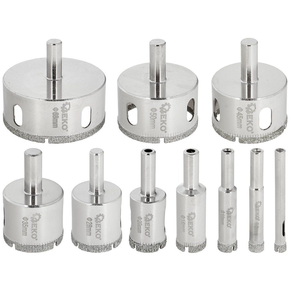 Potřebujete sadu vrtáků, která si poradí s každým úkolem – od malých montážních otvorů po větší otvory pro elektrické nebo hydraulické instalace? Sázejte na profesionální 10dílnou sadu diamantových korunových vrtáků, navrženou pro přesné opracování nejtvrdších materiálů: dlažby, obkladů, keramiky, mramoru nebo granitu.