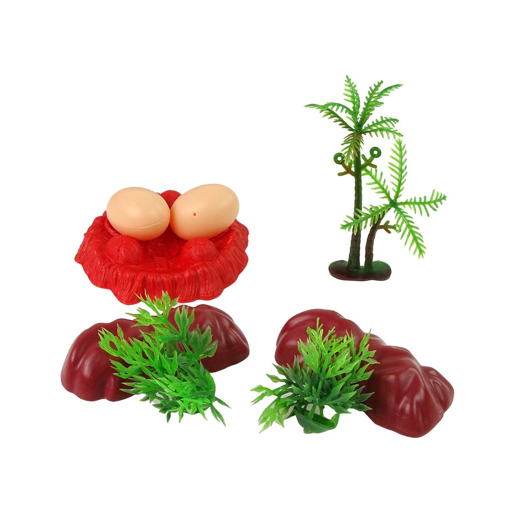 - Příslušenství, včetně dvou kamenů, keřů, dvou dinosaurích vajec a podstavce, které umožňuje vytváření reálných scén