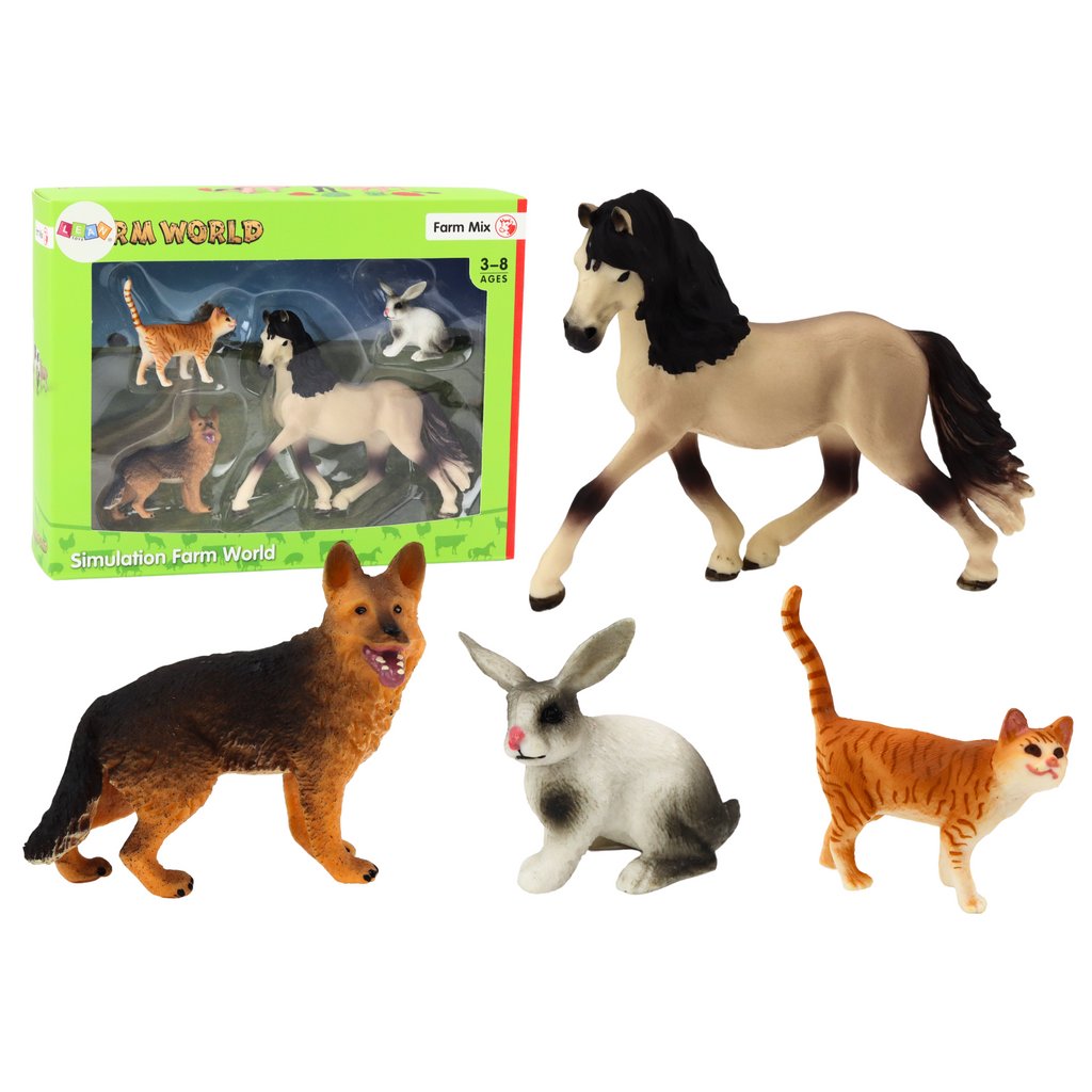 Sada Domácích Zvířatních Figurek Kůň Pes Králík Kočka 4 Kusy