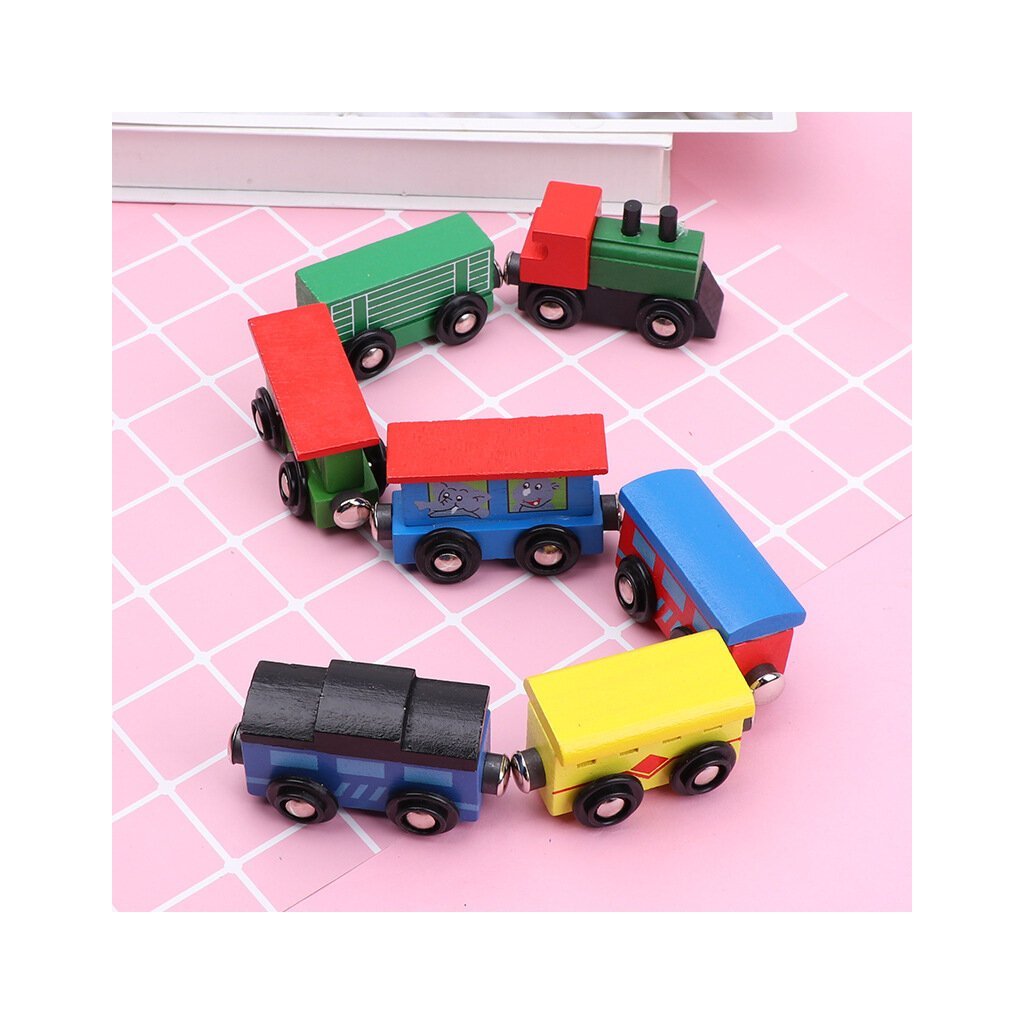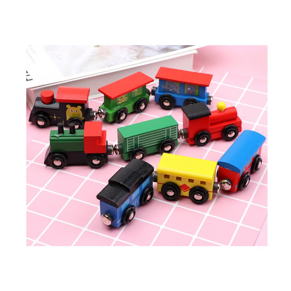 Sada Dřevěné Magnetické Vláčky Lokomotivy 12 Ks