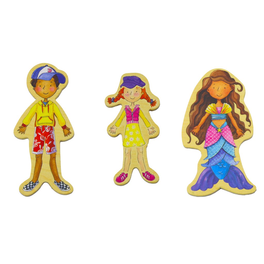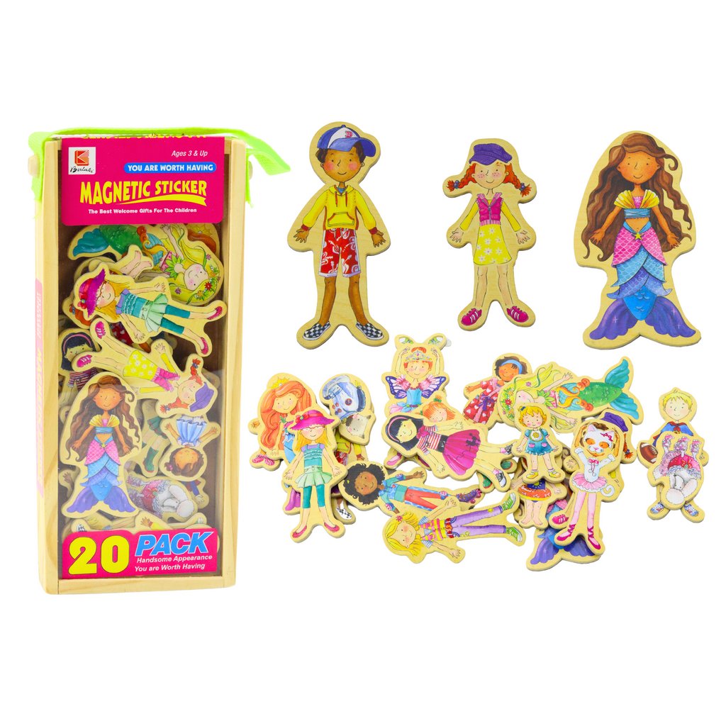 Sada Dřevěné Magnety Postavy v Převlecích Barevné 20 Kusů je neobyčejně kreativní a vzdělávací hračka, která rozvíjí představivost každého dítěte.