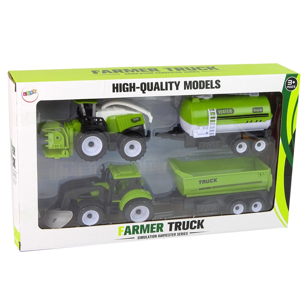 - Obsah balení: traktor, kombajn, cisterna na vodu, návěs na obilí