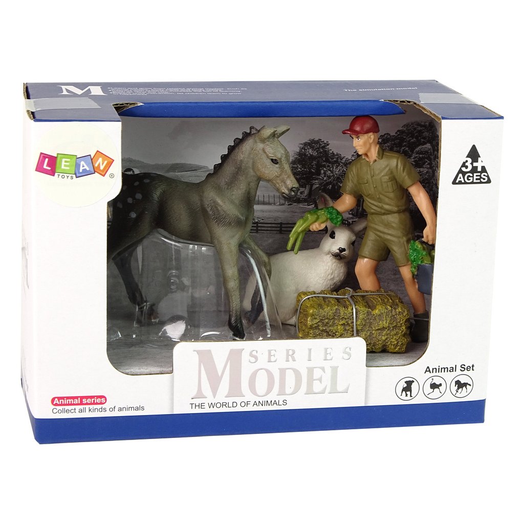 - Sada figurek zvířat Šedý kůň, zajíc, farmář Skvěle zpracované figurky zvířat s důrazem na detaily obohatí sbírku každého malého sběratele