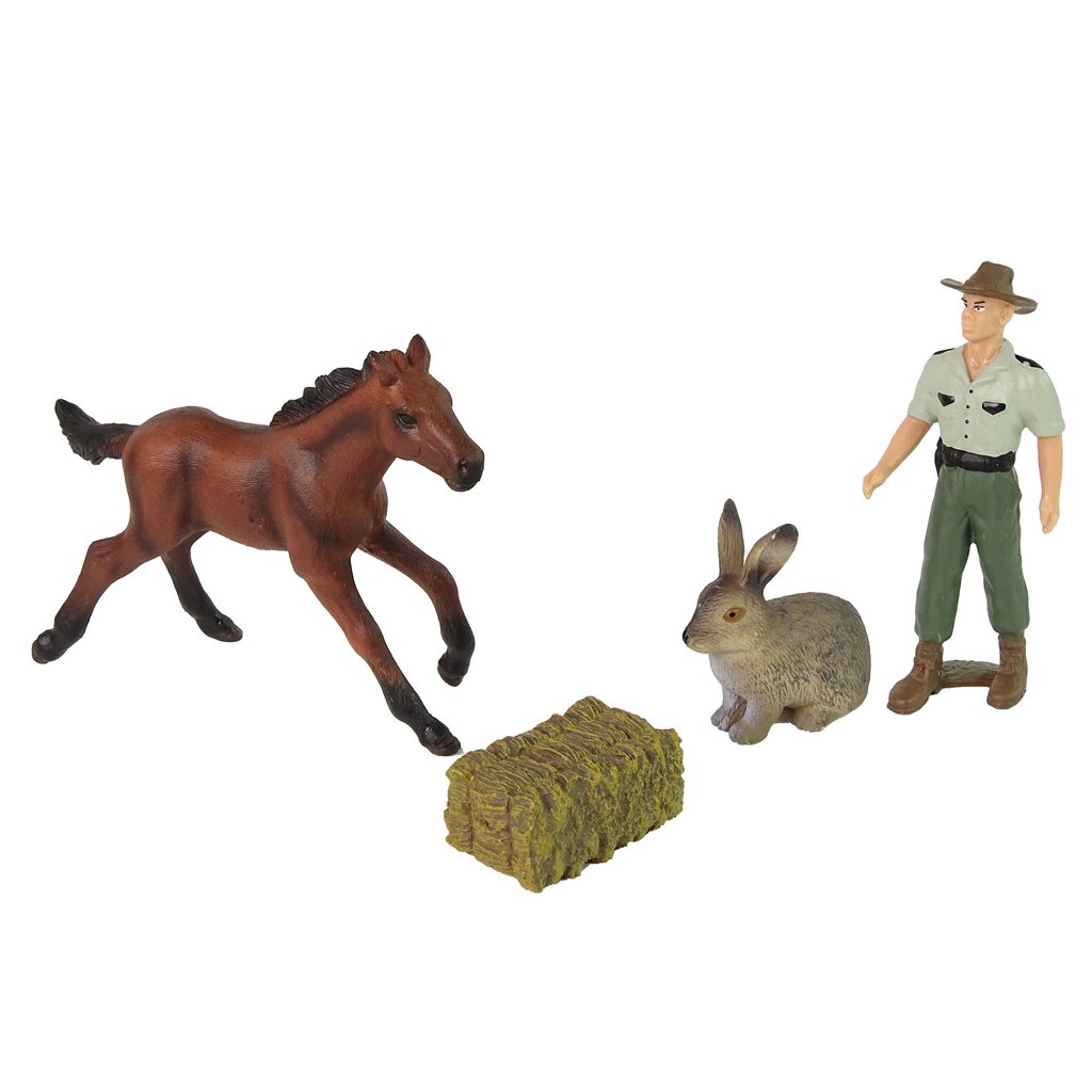 Sada figurek zvířat: kůň, zajíc, farmář Skvěle zpracované figurky zvířat s důrazem na detaily obohatí sbírku každého malého sběratele Především doplní sbírku farmy a budou skvělým doplňkem pro hry, které podnítí fantazii a kreativitu vašeho dítěte!