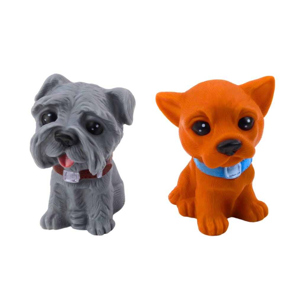 - Každý z pejsků je pečlivě vytvořen z měkkého a bezpečného plastu, což jim dodává realistickou podobu a zároveň zaručuje jejich odolnost při každodenních hrách