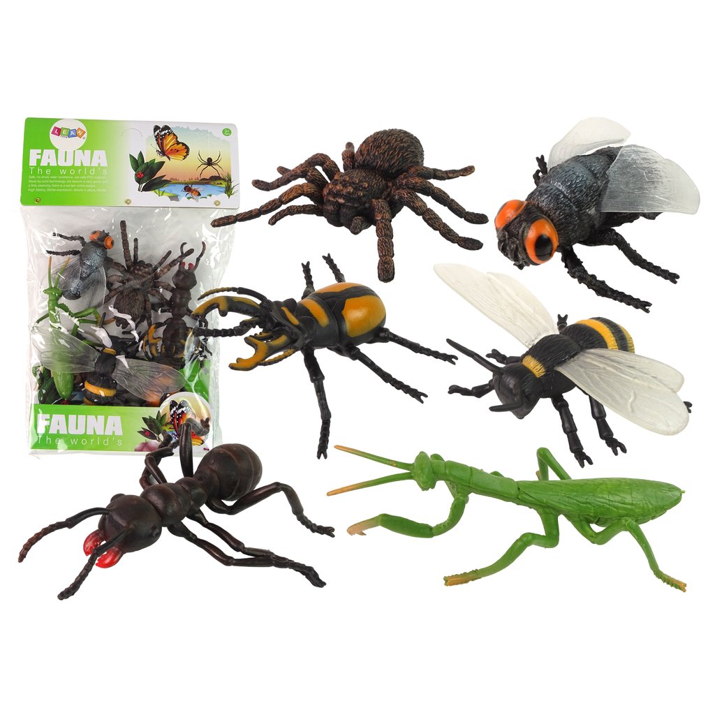 ⭐ Sada 6 figurek hmyzu – pavouk, včela, moucha, šváb, mravenec, kudlanka ⭐