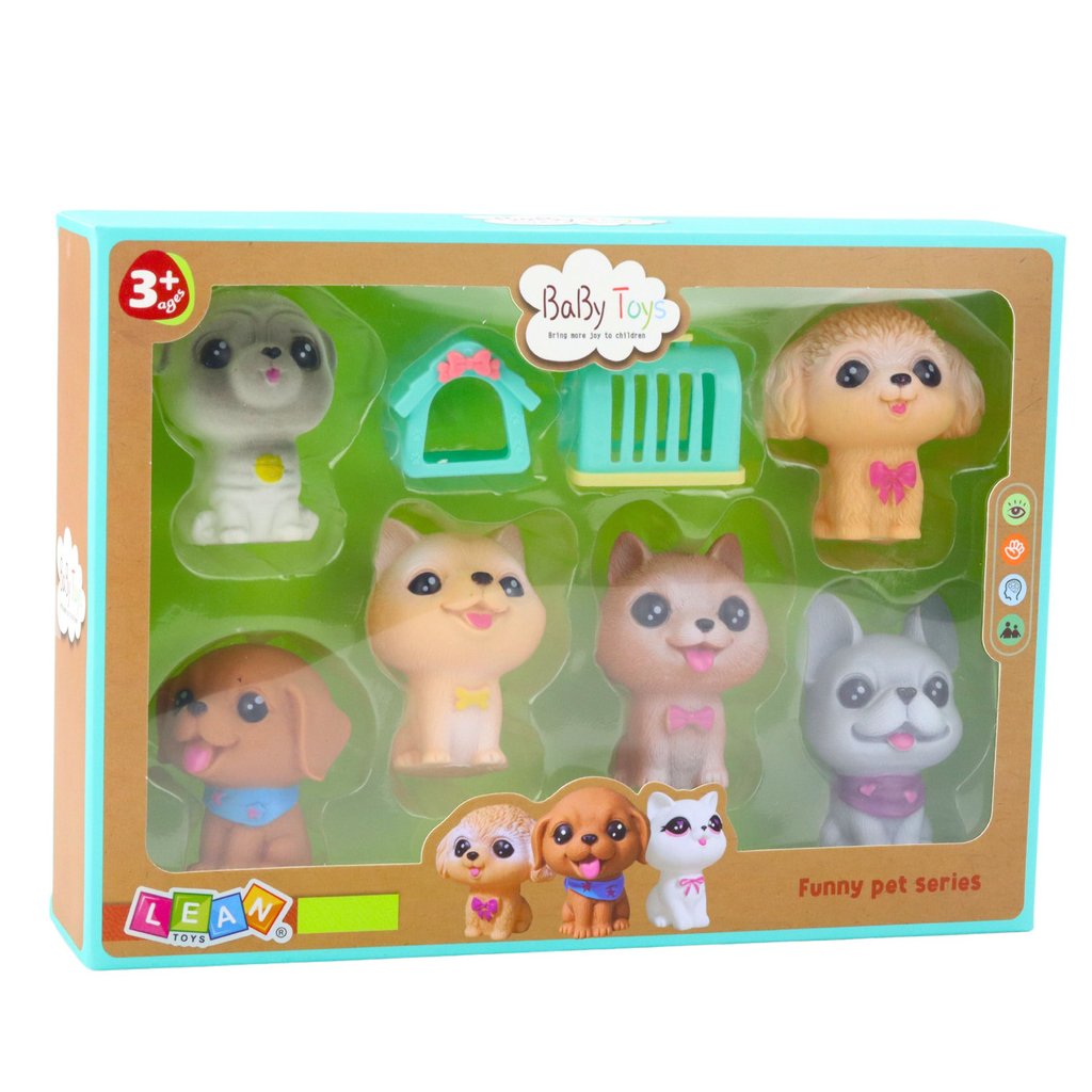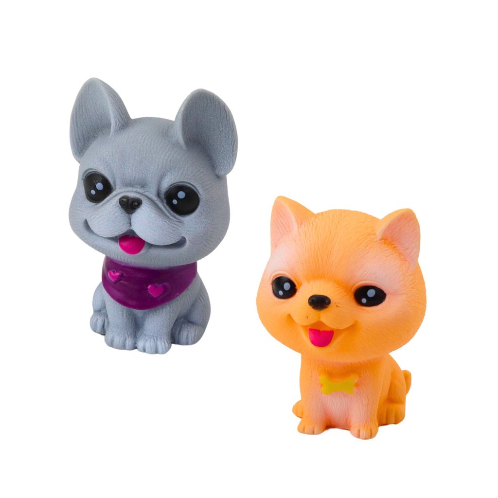 Každá figurka je vyrobena z měkké, bezpečné gumy a má detailní a dokonale zpracovaný vzhled. Realistické detaily, milé čumáčky a velké oči vzbuzují sympatie na první pohled. Po stisknutí figurky vydávají charakteristický pisklavý zvuk připomínající štěněčí písek. Navíc má každá figurka otvor ve spodní části. Lehké, odolné a snadno udržitelné hračky jsou skvělým nástrojem pro rozvoj dětské představivosti a podporu kreativních her na péči o čtyřnohé kamarády.