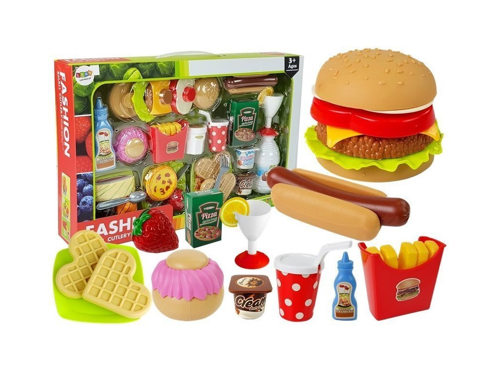 Objevte fantastický set pro přípravu hamburgerů s potravinami, který zaručeně zajistí vaší ratolesti hodiny skvělé zábavy. Náš kuchyňský set obsahuje vše potřebné, co vaše dítě potřebuje, aby se ponořilo do světa gastronomie. Malí kuchaři se mohou vžít do role šéfkuchaře ve vlastním fast foodu či restauraci, a tím rozvíjet své logické myšlení, samostatnost a naučit se přípravu jídel. A co může být větší zábava než skládání a servírování hamburgery hostům? Set nabízí varianty sladkých i fast-foodových pochutin.