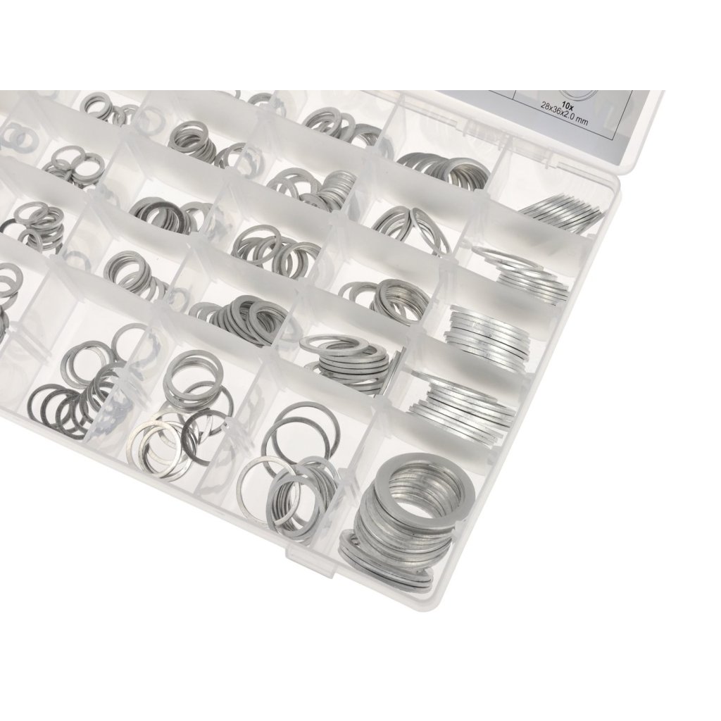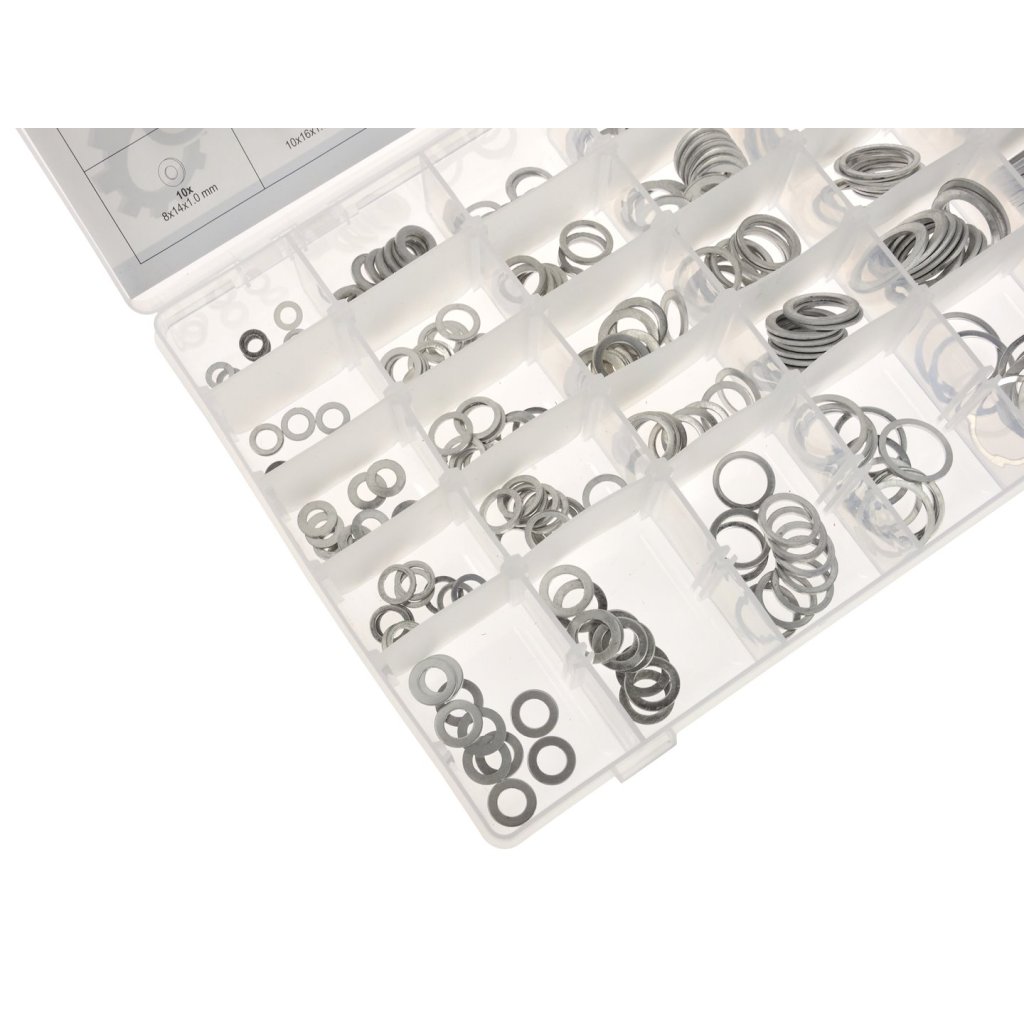 Sada 300 hliníkových podložek v 30 různých velikostech.