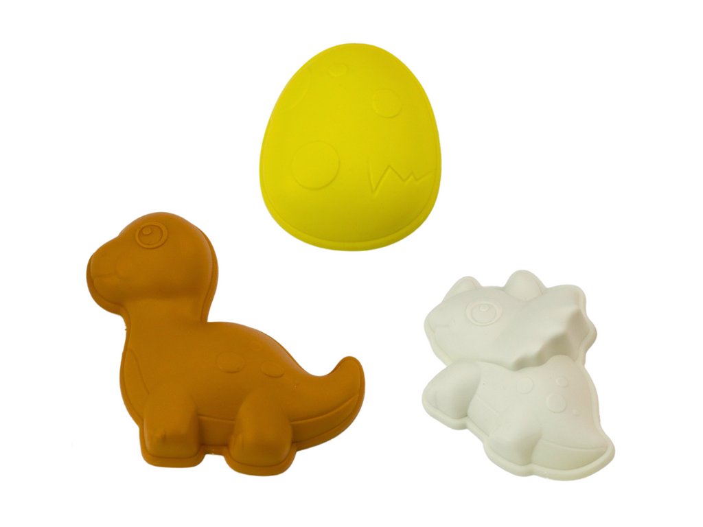 Díky tomu si děti mohou přesývat písek nebo vodu, vytvářet fascinující efekty a zároveň objevovat svět dinosaurů Sada obsahuje také tři formičky v různých tvarech, které umožňují stavbu hradů, věží a dalších konstrukcí z písku