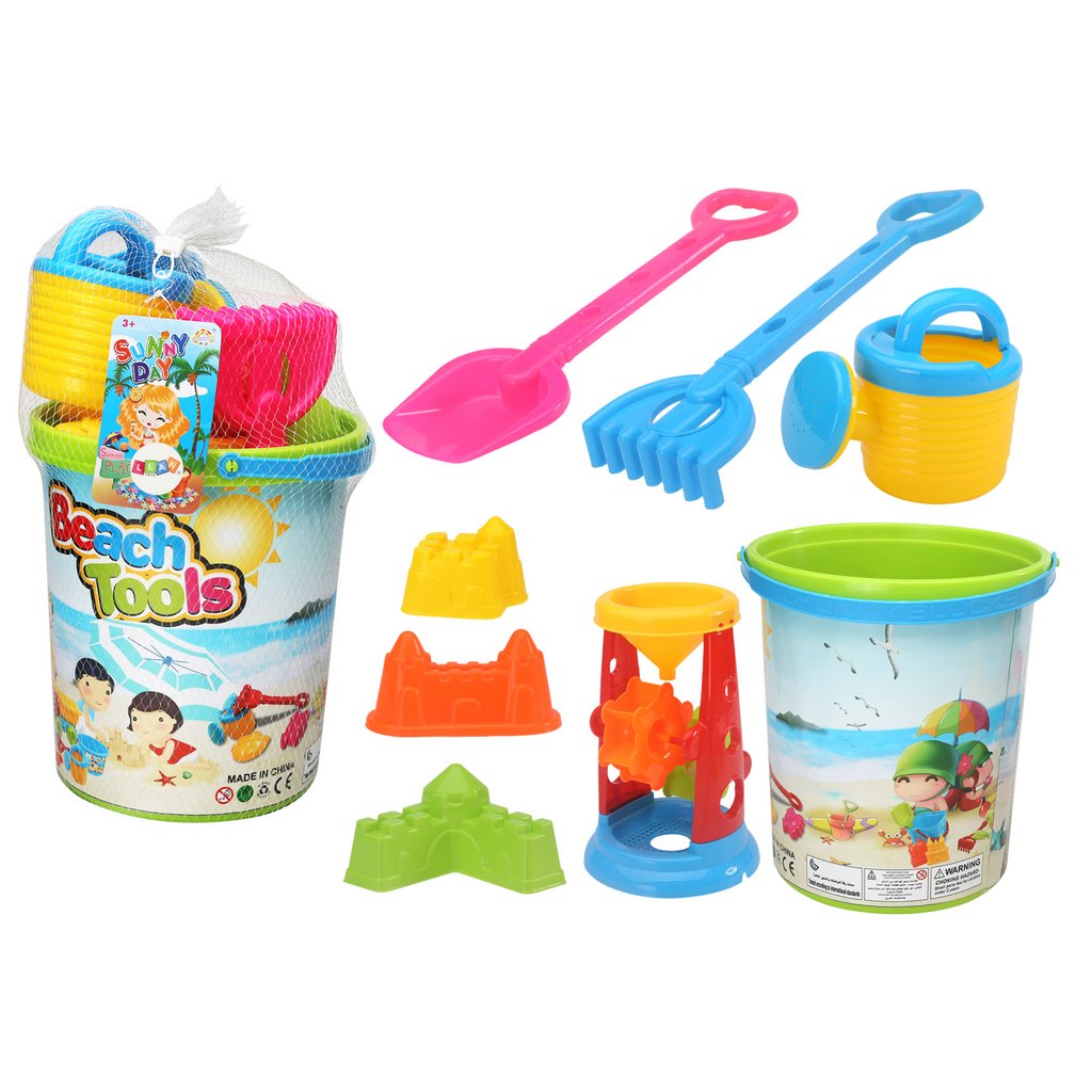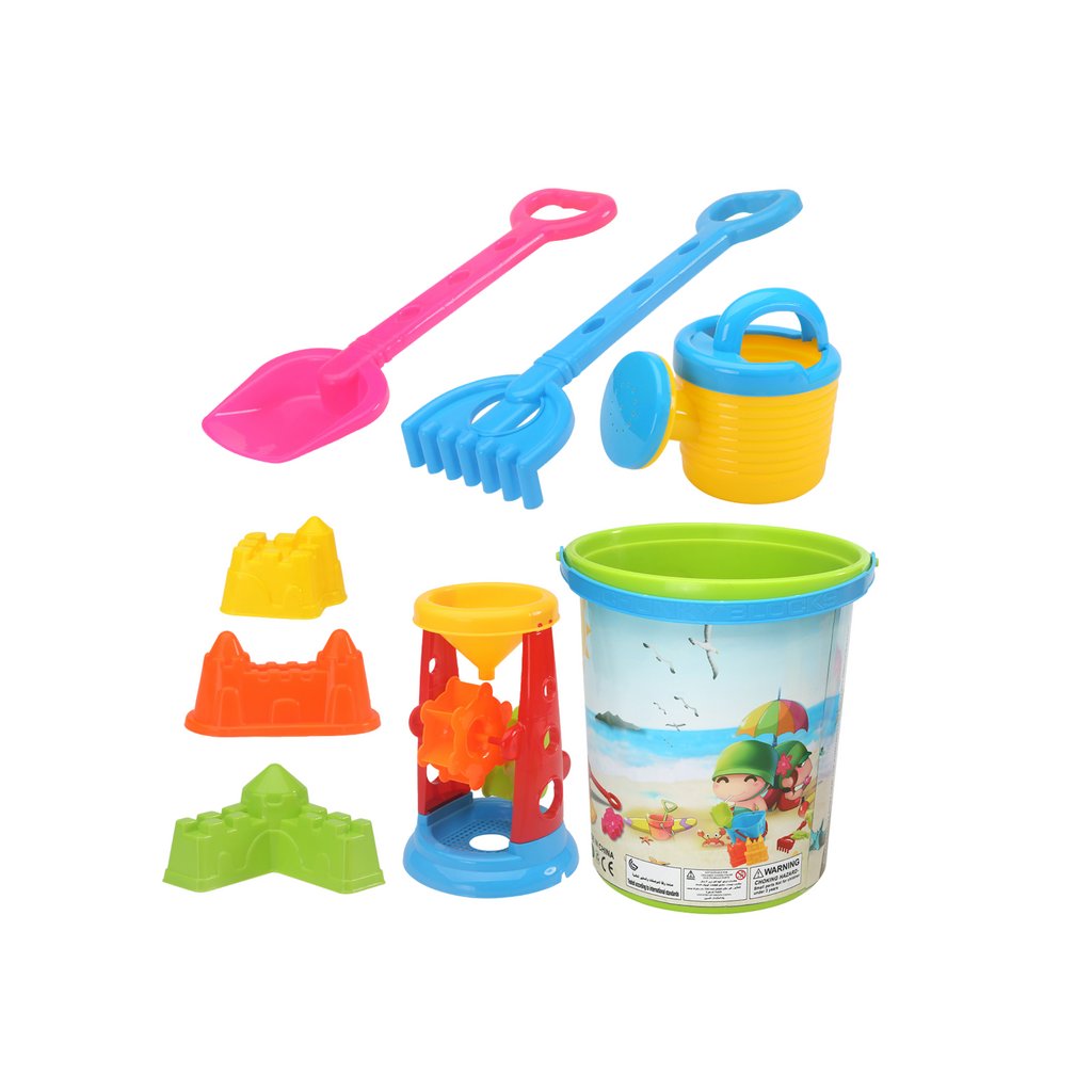 Sada hraček na písek je ideální volbou pro děti, které milují hraní na čerstvém vzduchu Hlavním prvkem je velký kbelík ozdobený plážovými obrázky, které okamžitě přitahují pozornost a zvou k hraní