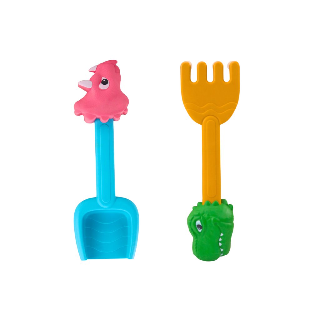 - Součástí sady je také lopatka a hrábě s motivem dinosaurů, které dělají každou hru vzrušující cestou do minulosti