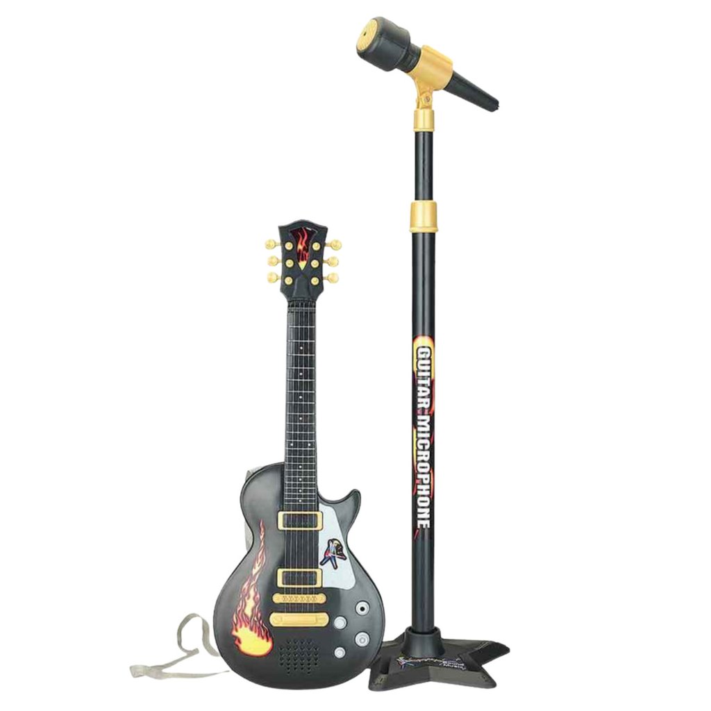 Sada Hudebních Nástrojů pro Děti Kytara Stativ s Mikrofonem Černá