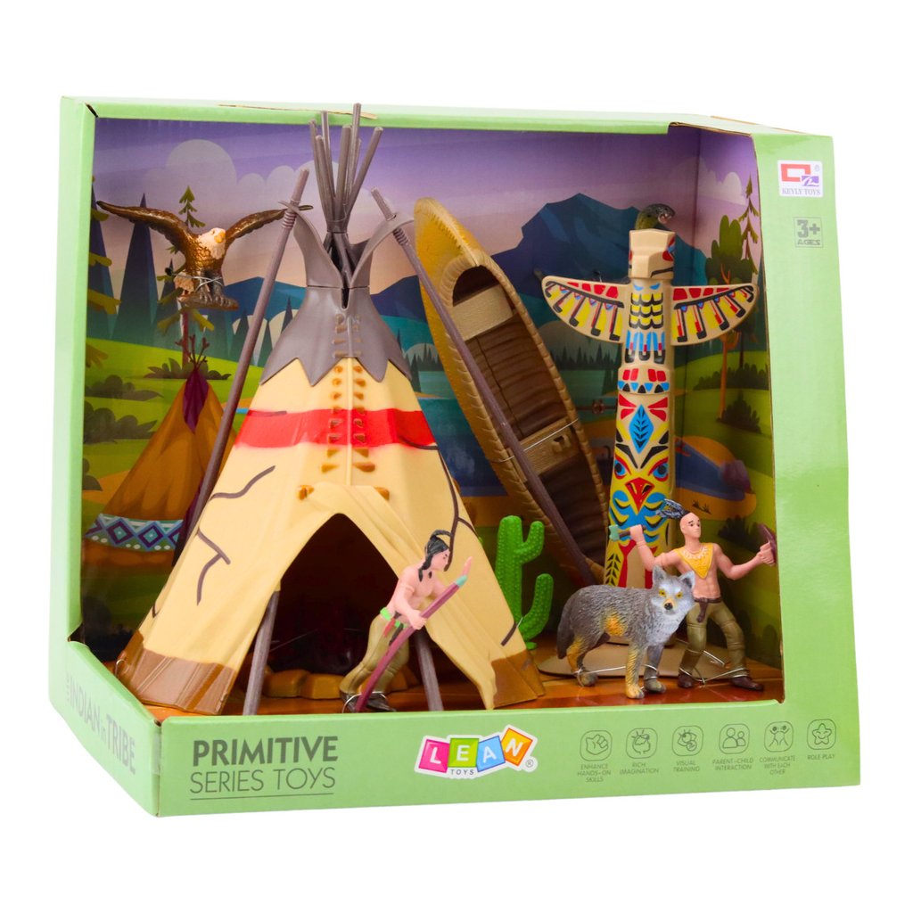 Sada Indiánské Figurky Vesnice Indiáni Stan Tipi Kajak Totem