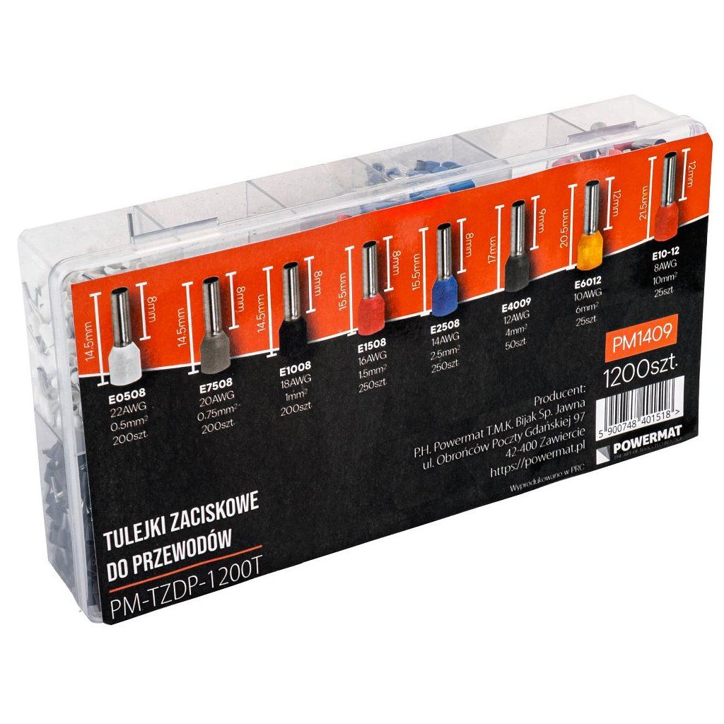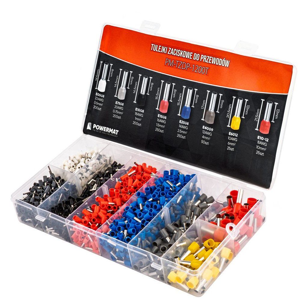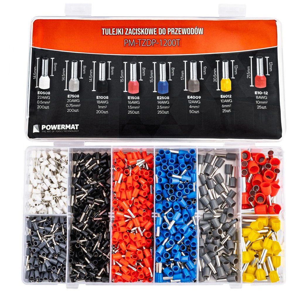 Sada izolovaných lisovacích dutinek 1200 ks POWERMAT PM-TZDP-1200T – 0,5–10 mm²