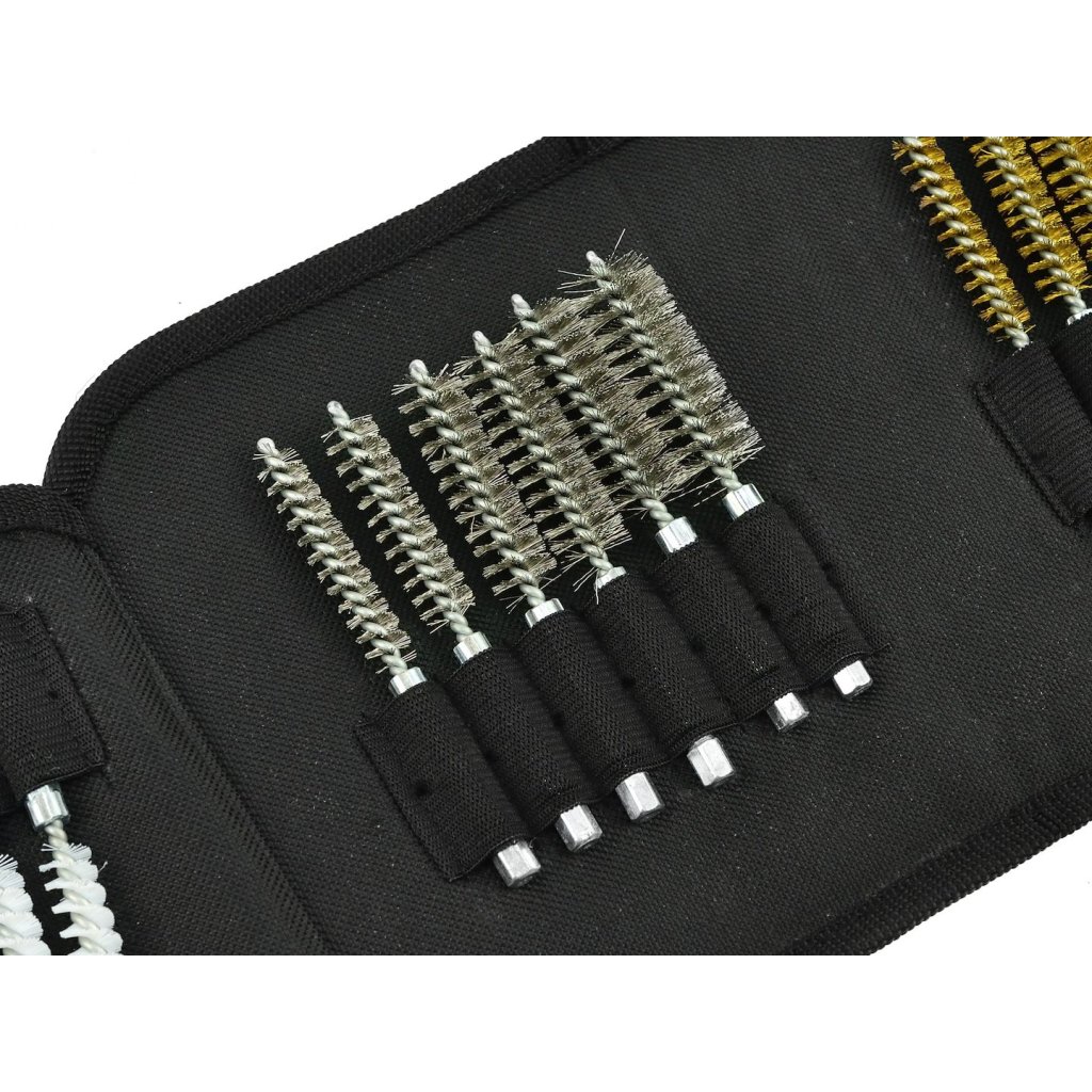 Sada kartáčů pro čištění vstřikovačů a žhavicích a zapalovacích svíček. Sada obsahuje 18 kartáčů různé tvrdosti a průměru a držák s prodloužením. Všechny kartáče mají pohon 1/4”, takže je lze úspěšně používat se šroubováky a vrtačkami.