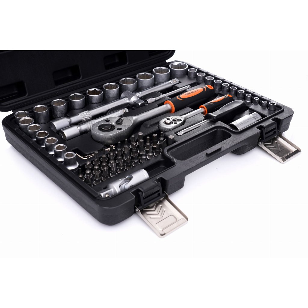 - Walizka tworzywo sztuczne, zamykana, z organizerem Obsah balení ✅ 2x Grzechotki (1/2" i 1/4") ✅ 1x Wkrętak 1/4" do nasadek i bitów ✅ 2x Przedłużki 1/2" (125 i 250 mm) ✅ 1x Przedłużka 1/4" (100 mm) ✅ 1x Adapter do bitów 1/4" ✅ 1x Pokrętło typu T z kwadratem - przelotka 1/2" ✅ 1x Przegub Cardana 1/2" ✅ 3x Imbusy typu L (1.25, 1.5, 2.5, 3 mm) ✅ 1x Nasadka do świec 1/2" (21 mm, 65 mm długości) ✅ Nasadki 1/2" – 10 do 27 mm (16 ks.) ✅ Nasadki 1/4" – 4 do 13 mm (10 ks.) ✅ Imbusy 3, 4, 5, 6, 7, 8 mm ✅ Bity: PH0–PH3, PZ0–PZ3, płaskie 4–7 mm, TORX T8–T40, kwadratowe S0–S3 ✅ Walizka transportowa ✅ Záruka 12 miesięcy