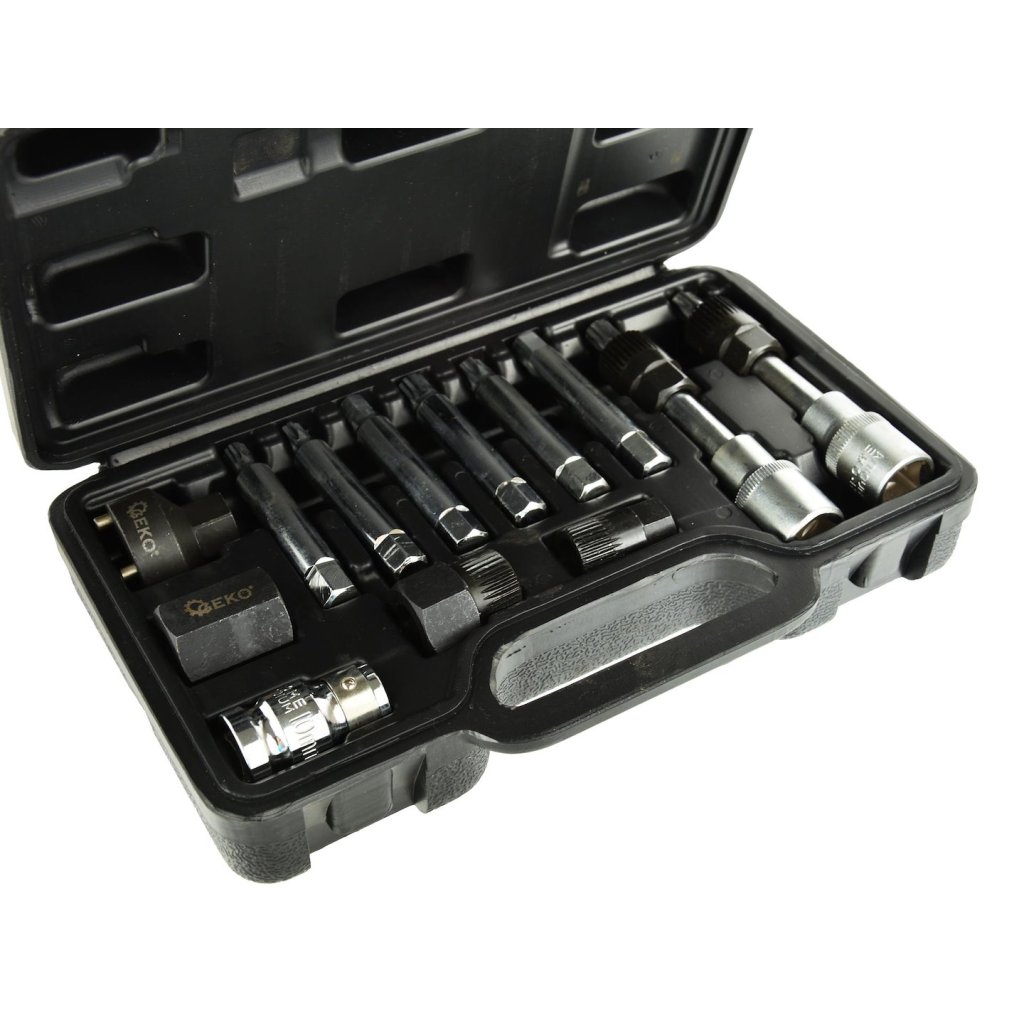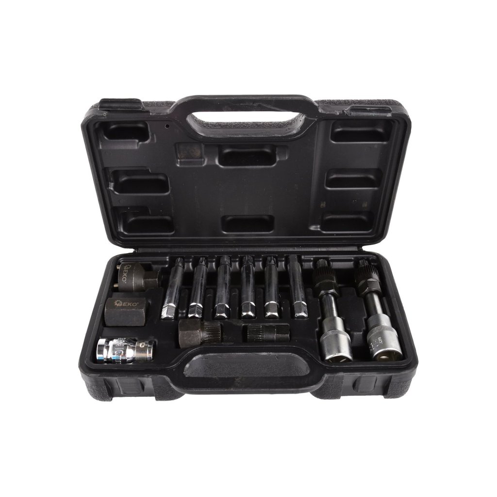 Sada klíčů pro montáž a demontáž alternátorů. Klíče jsou vyrobeny z vysoce kvalitní chrom-vanadové oceli CrV, díky čemuž jsou odolné a odolné proti poškození. Klíče umožňují současné odšroubování šroubu upevňujícího řemenici (povýkoní příslušného bitu) a…