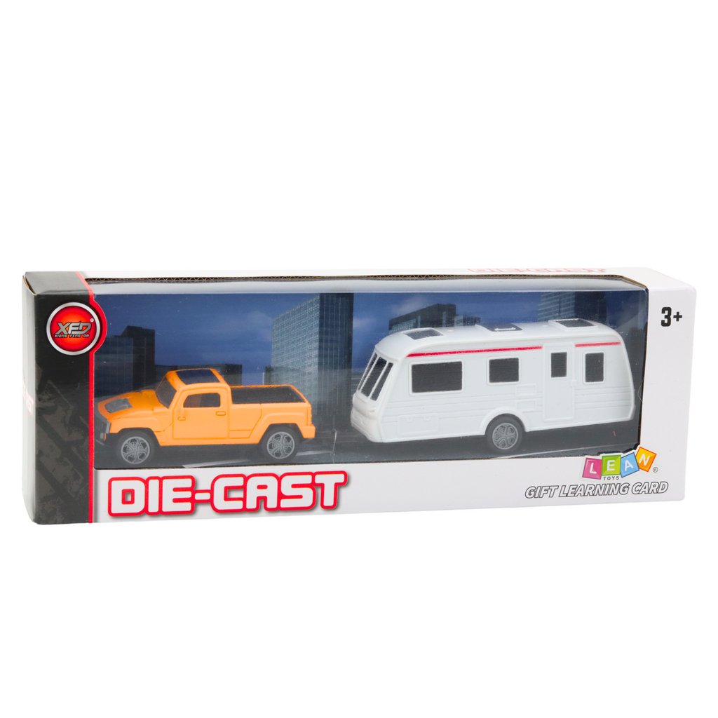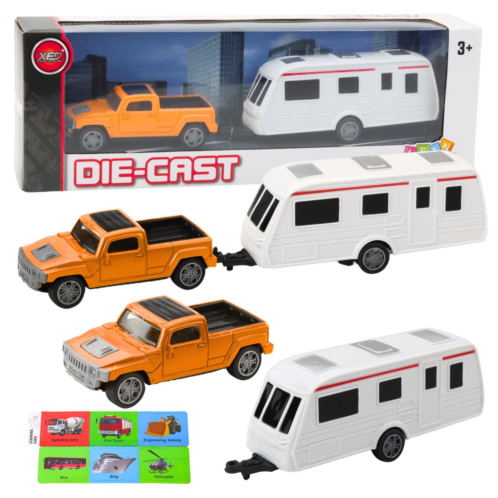 Sada Kovové Auto S Kempingovým Přívěsem Oranžový