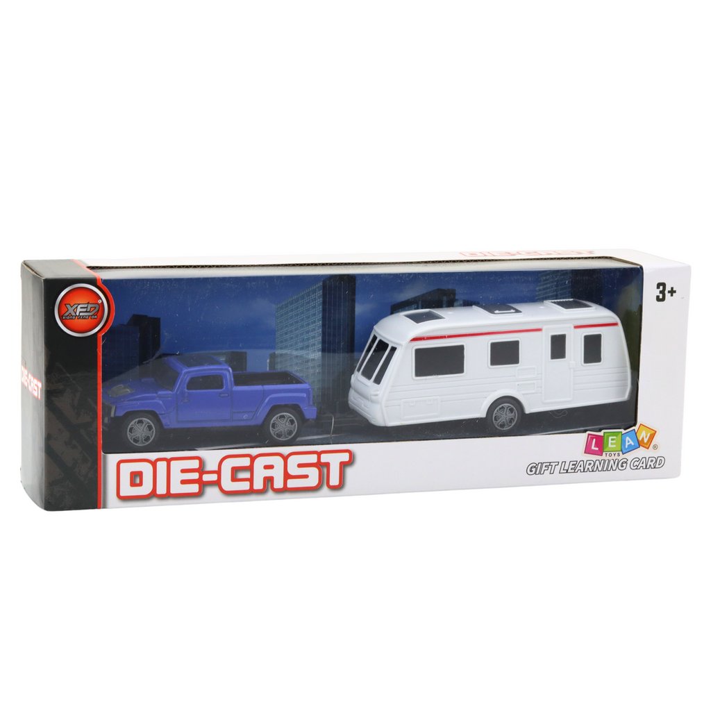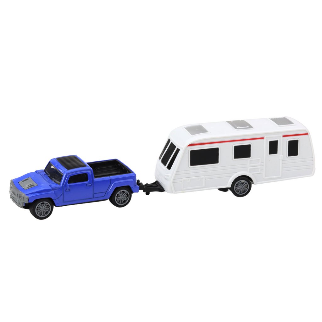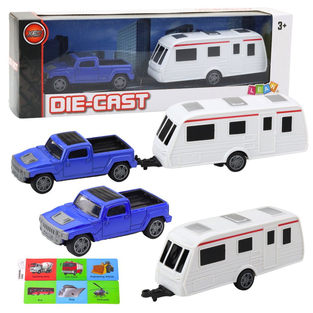 Sada Kovový Auto s Modrým Kempingovým Přívěsem