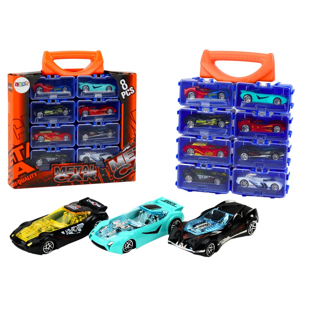 Sada Kovových Autíček v Kufříku, 8 Kusů