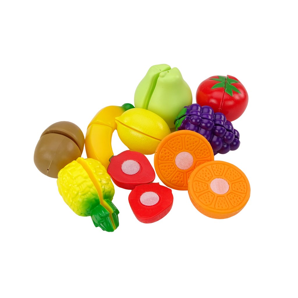 - 9 realisticky zpracovaných ovoce spojených suchými zipy pro snadné "krájení"