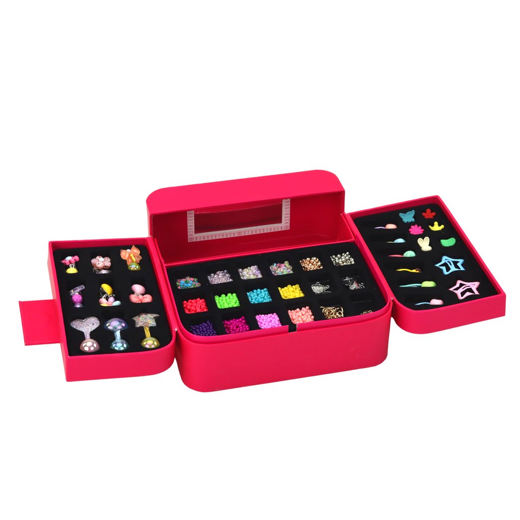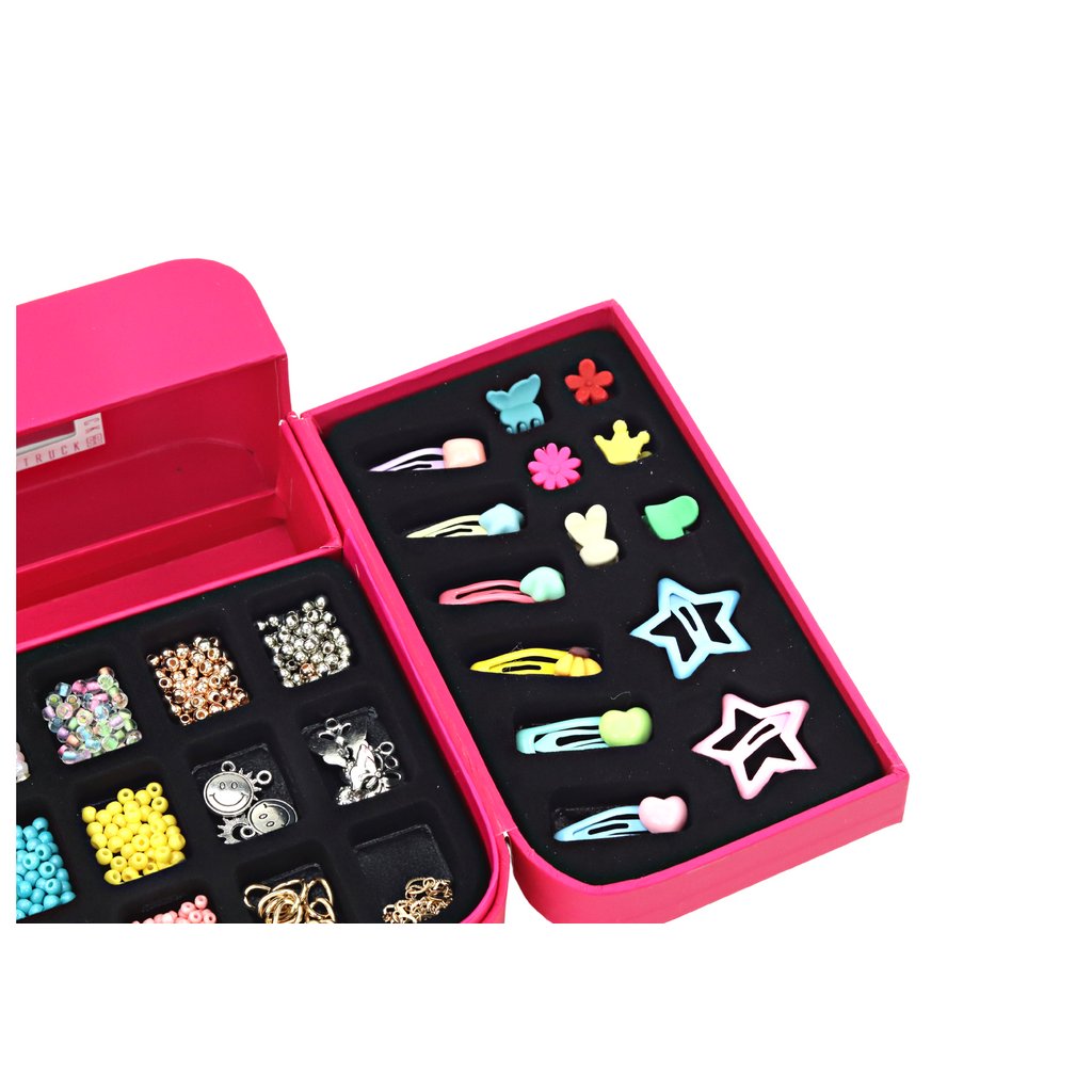 Sada na výrobu šperků v krabičce s přívěsky a sponkami Představujeme vám jedinečnou sadu pro výrobu náramků, zabalenou v elegantní růžové krabičce! Tato kompletní sada obsahuje vše, co vaše dítě potřebuje k vytvoření nespočtu šperků a vyjádření své kreativity
