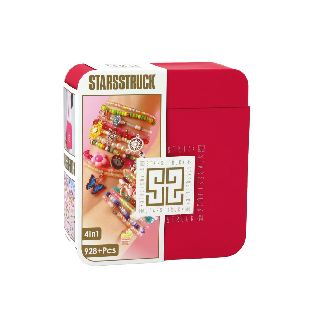 Sada na výrobu šperků v krabičce s přívěsky a sponkami Představujeme vám jedinečnou sadu pro výrobu náramků, zabalenou v elegantní růžové krabičce!