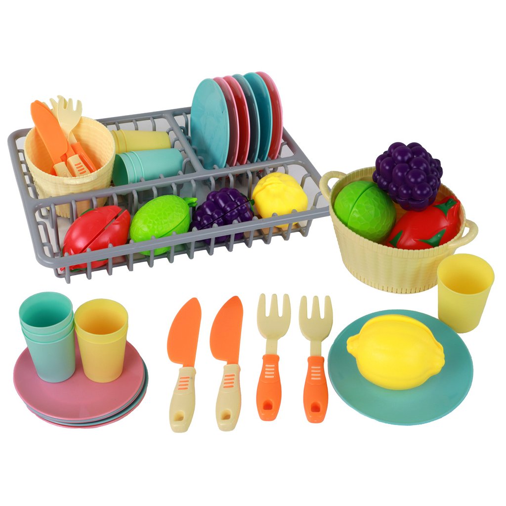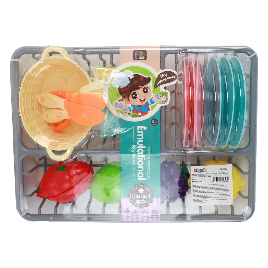 Sada se zaměřuje na rozvoj manuálních dovedností a koordinace rukou a očí a zároveň učí děti základům vaření od nejútlejšího věku Sada obsahuje šedý sušák na nádobí o rozměrech 29,5 cm x 22 cm x 5 cm