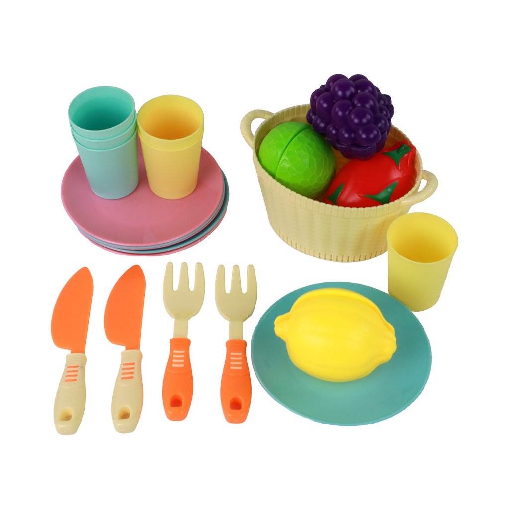 - 21 ks, doplňky Tato kuchyňská sada s nádobím a ovocem je skvělá vzdělávací hračka pro děti