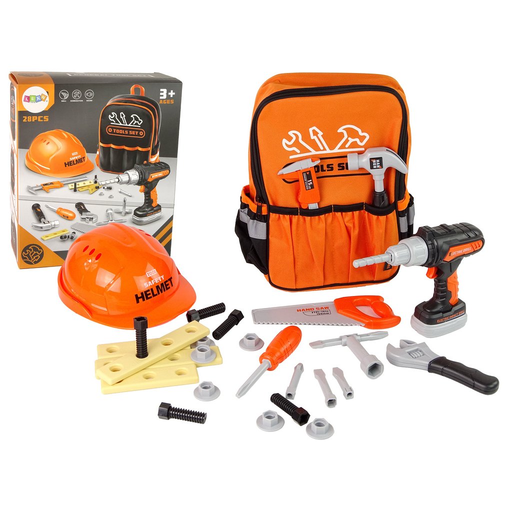 - Sada pro kutily v batohu s helmou a nářadím, oranžová Velká sada v batohu, kterou si můžete vzít s sebou kamkoli na každou dětskou stavbu