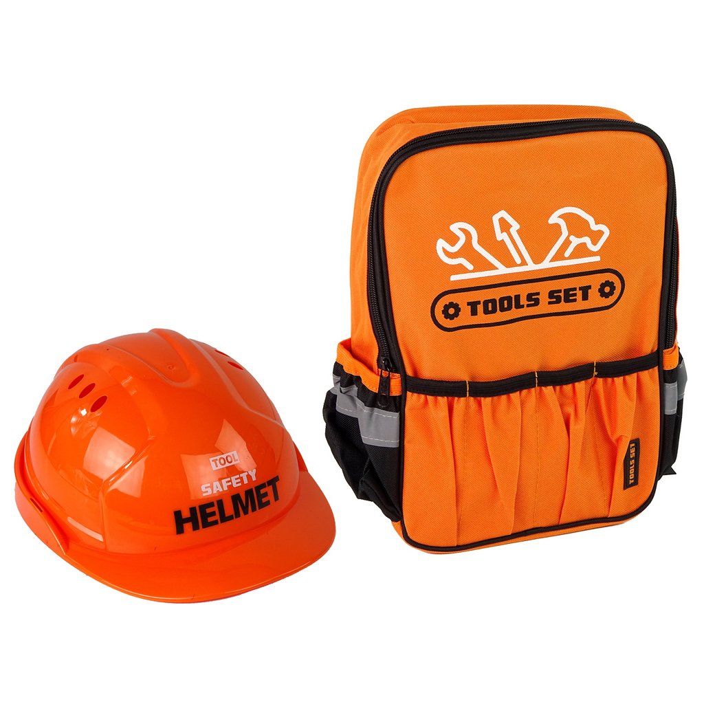 Sada pro kutily v batohu s helmou a nářadím, oranžová Velká sada v batohu, kterou si můžete vzít s sebou kamkoli na každou dětskou stavbu.