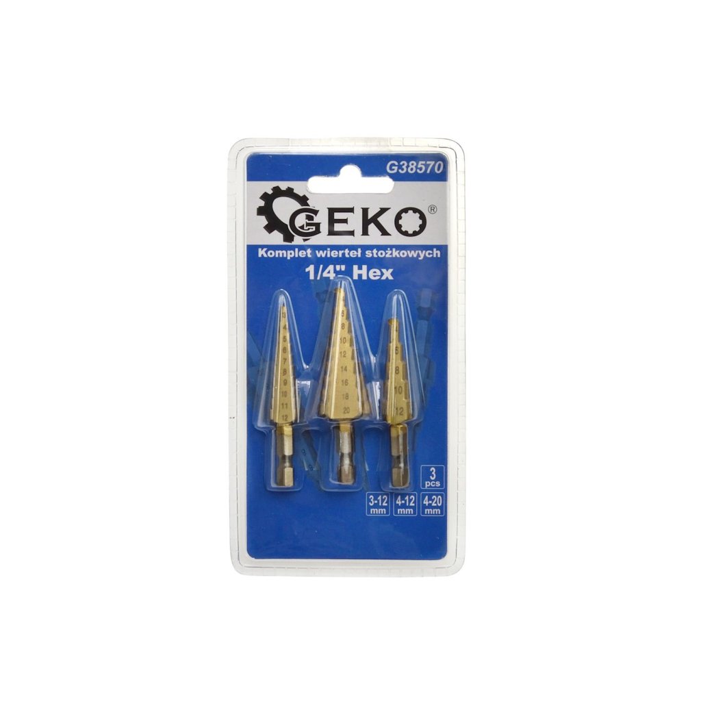 Sada kuželových vrtáků ve velikostech 3-12, 4-12 a 4-20 mm. Vrtáky s uchycením 1/4" HEX. Vyrobené z HSS oceli potažené vrstvou titanu. Umožňují vrtání dokonale kulatých otvorů do oceli, mosazi, mědi, hliníku, dřeva a plastu.