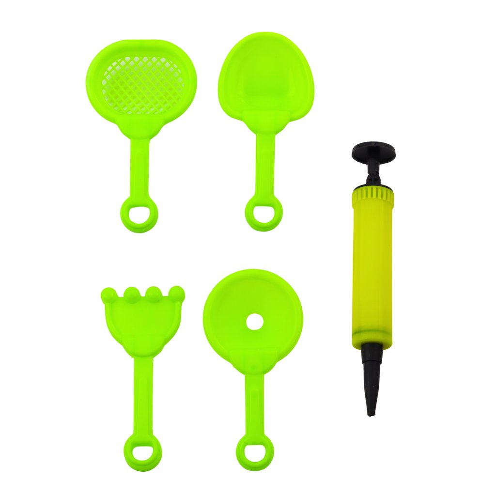- 7 praktických nástrojů pro formování, pompku a nafukovací desku, která slouží jako mobilní pískoviště