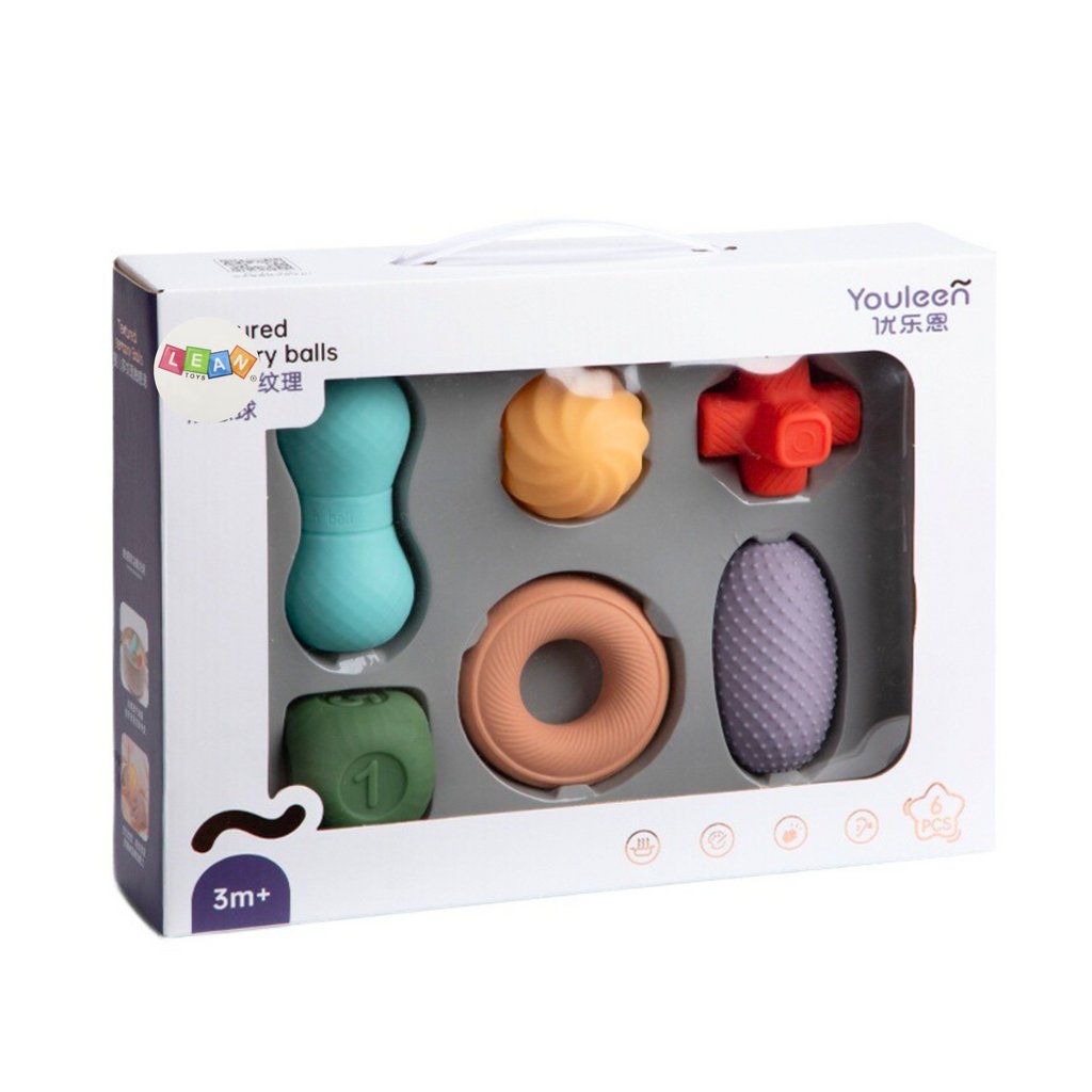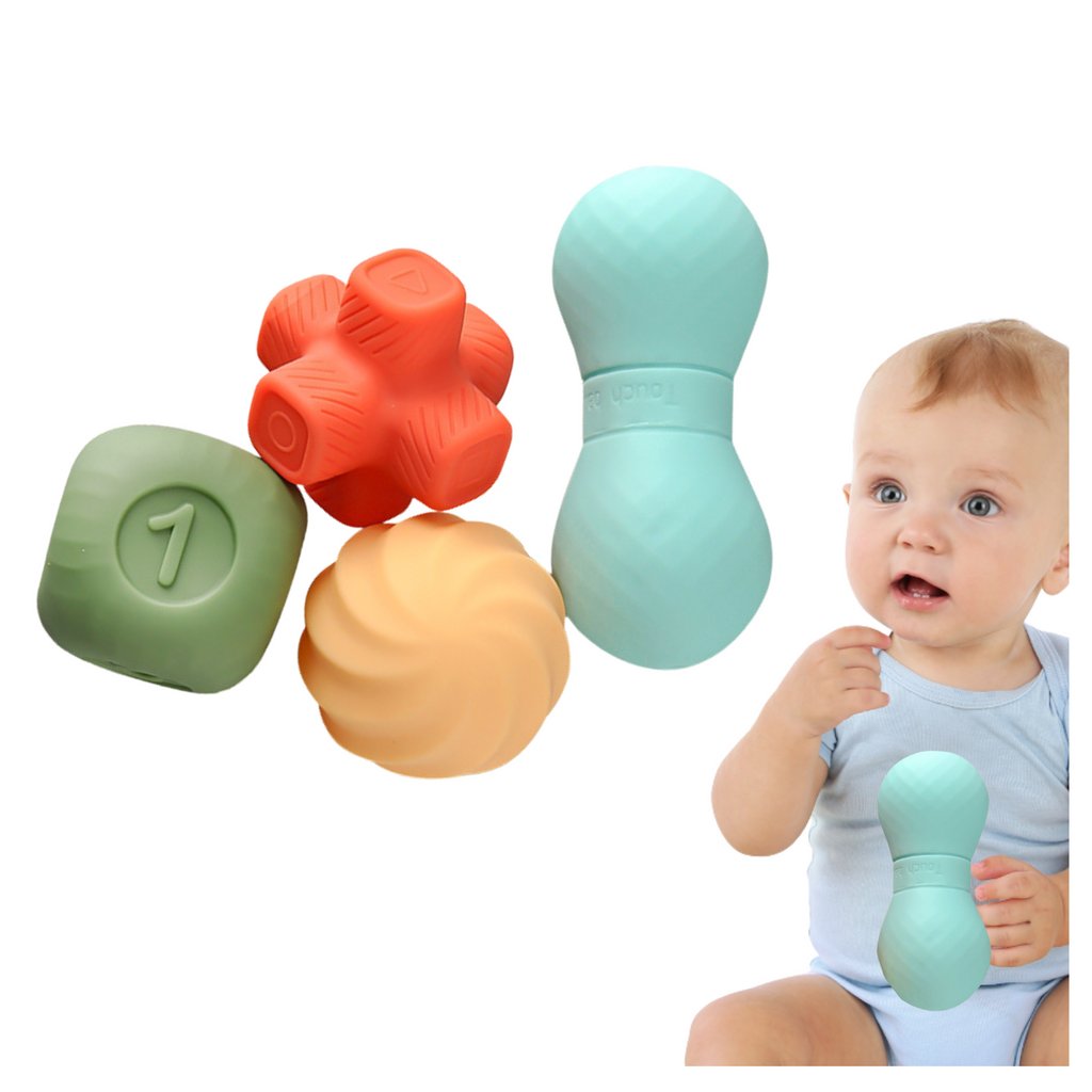 Souprava sensorických kuliček a kostek je ideální hračkou pro kojence od třetího měsíce života, podporující jejich správný rozvoj prostřednictvím hry Díky různorodým tvarům, texturám a barvám může malé dítě zkoumat svět prostřednictvím dotyku, zraku a pohybu
