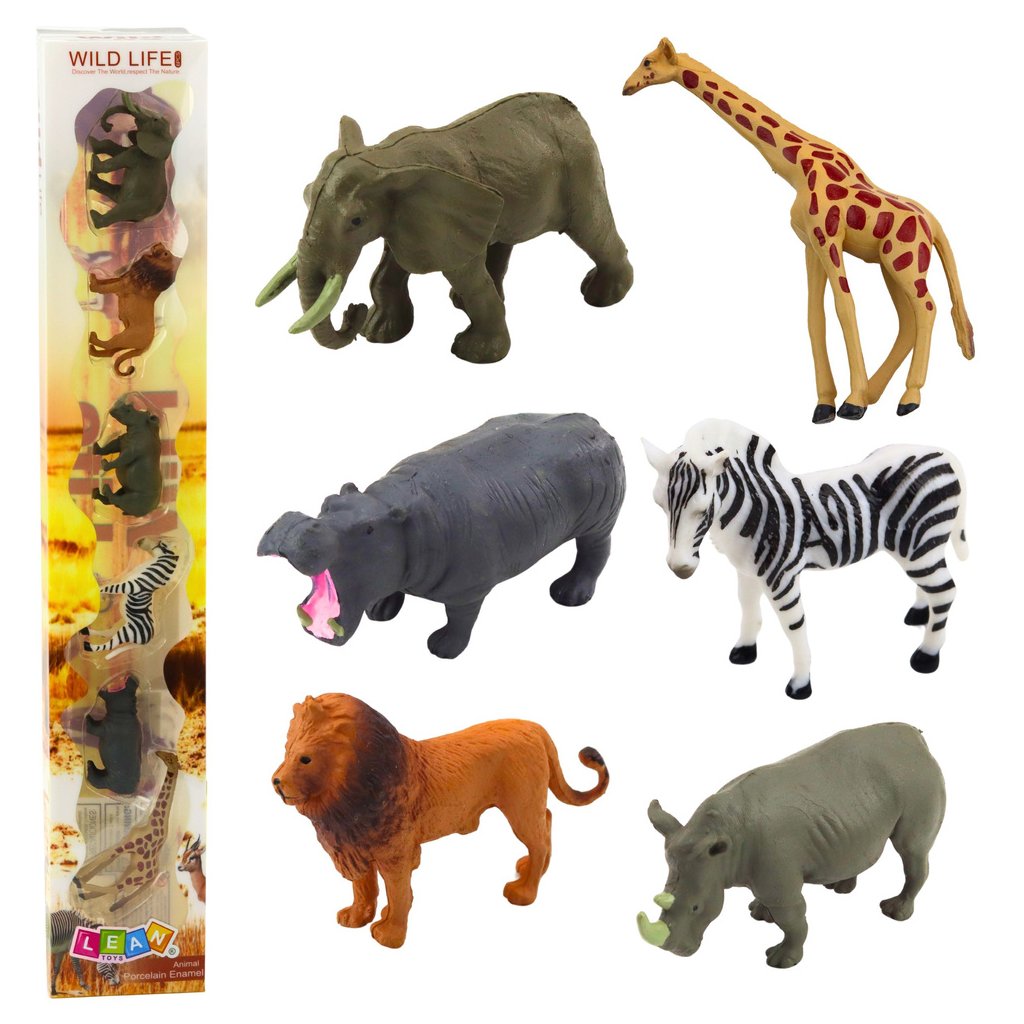 - Tento set obsahuje 6 realistických figurek představující zvířata žijící na afrických savanách: slona, žirafu, hrocha, zebru, lva a nosorožce