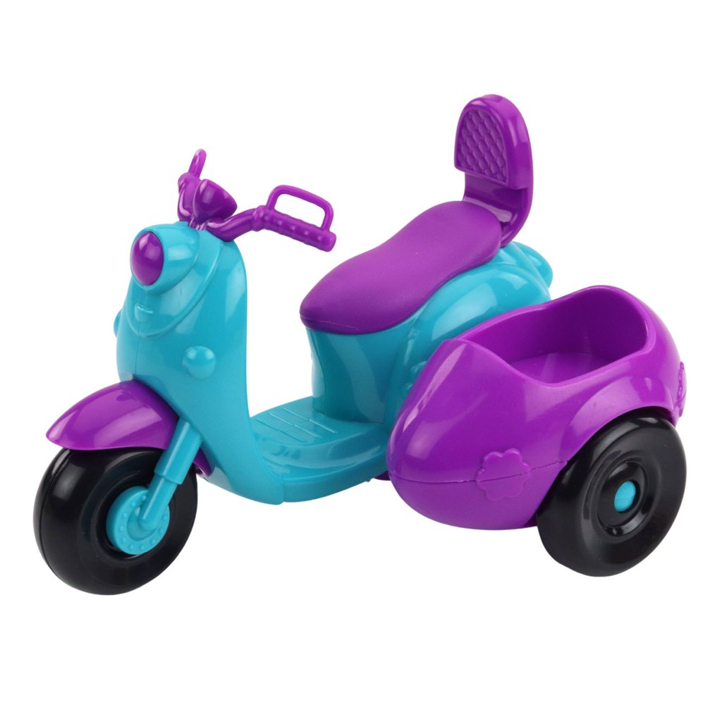 - S touto sadou se vaše dítě ponoří do světa plného dobrodružství díky unikátnímu tříkolovému skútru v intenzivních barvách modré a fialové, který je vybaven praktickým přívěsem s pejskem