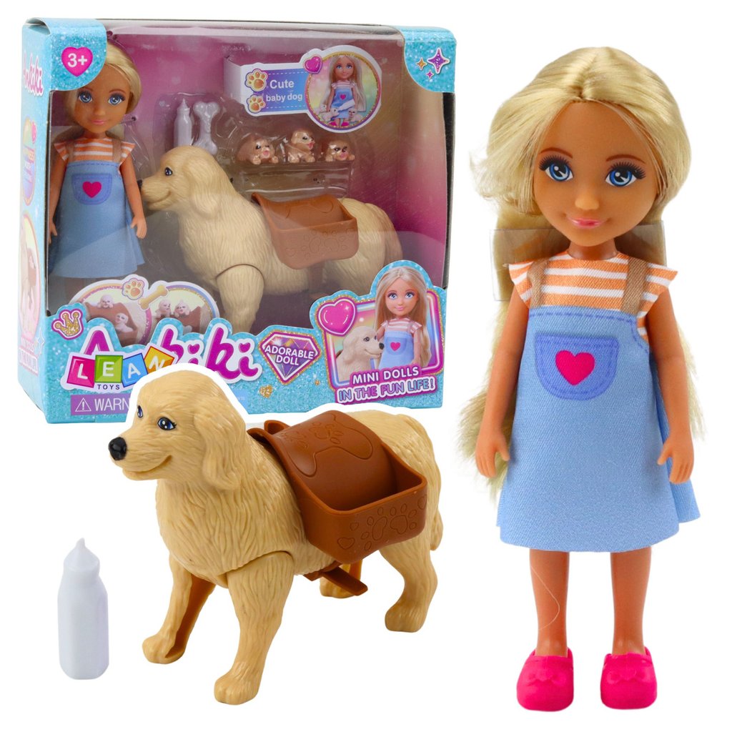 Mini Panenka s Pejskem a Štěňátky je rozkošná sada pro děti, které milují hru na péči o zvířata V saědě se nachází panenka o výšce 13 cm, oblečená v barevných šatech na šle a růžových botičkách