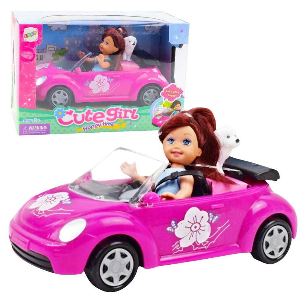 MINI PANENKA V KABRIOLETU PEJSEK Panenka v růžovém kabrioletu s pejskem je ideální sada pro děti, které milují hru na představování rolí.