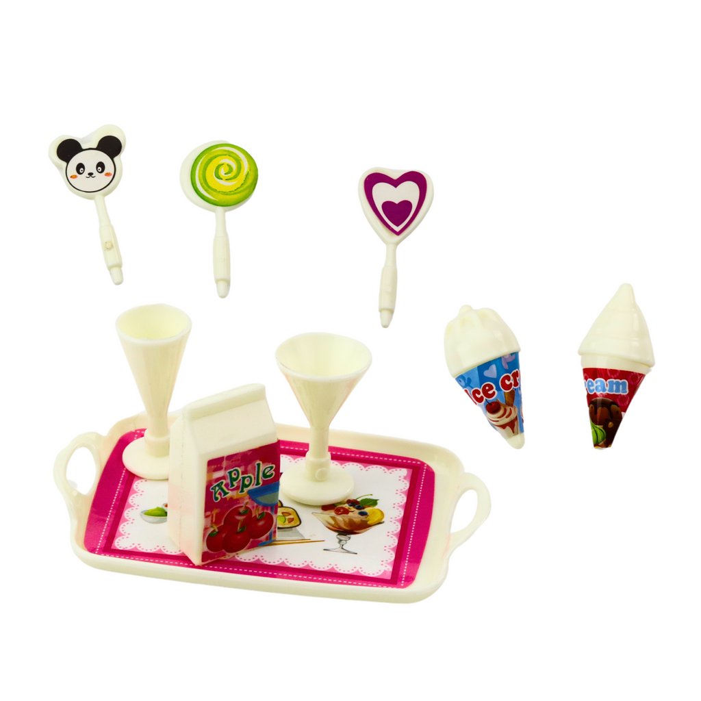 - lízátka, zmrzliny, kornouty a tác s občerstvením, které nejen obohacují zábavu, ale také podporují rozvoj představivosti, manuálních dovedností a společenských schopností dítěte
