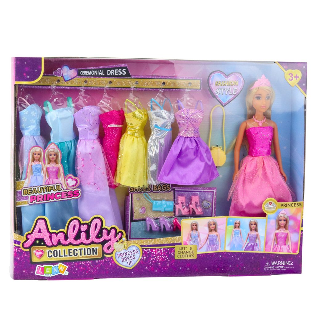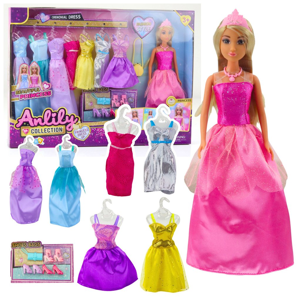 LALKA ANLILY Z KOLEKCJĄ 8 SUKIENEK BUTAMI I TOREBKAMI Lalka Anlily z kolekcją sukienek i dodatków to doskonały zestaw dla dzieci, które uwielbiają modę, kreatywną zabawę i stylowe przebieranki