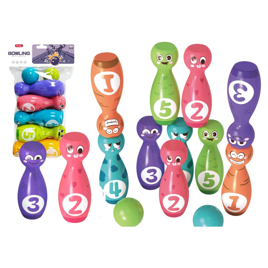 Sada na hraní bowlingu s úsměvy barevné koule 10ks je ideální zábava pro děti, která spojuje učení a zábavu do jednoho!
