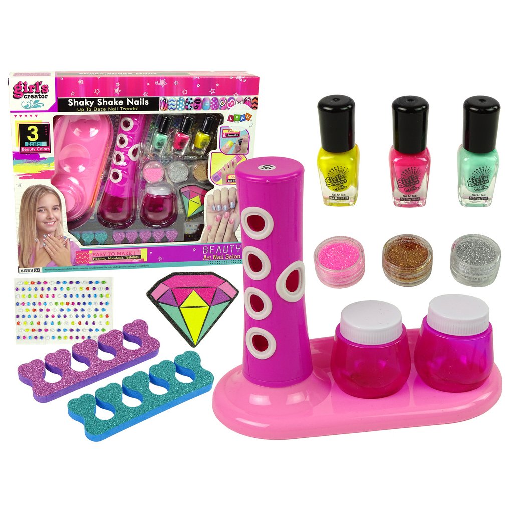 - Sada na lakování nehtů Dávkovač glitrů Lak na nehty Samolepky Představujeme perfektní řešení pro všechny maminky, kterým jejich dcerky kradou kosmetiku, a především si oblíbily laky na nehty