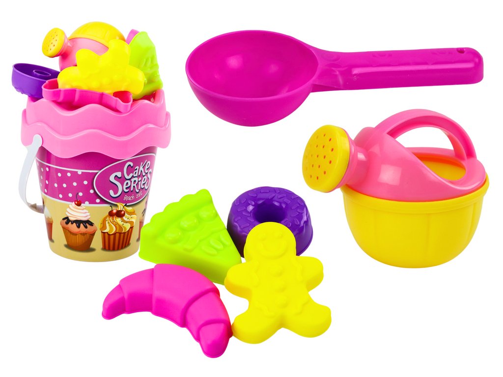Sada na písek Kýbl Konvička Formičky Růžové Sladkosti 8 ks