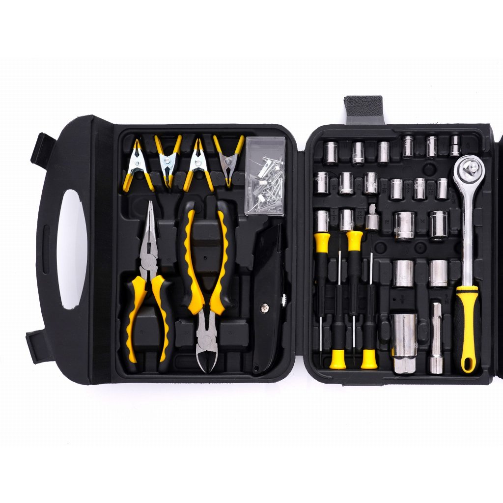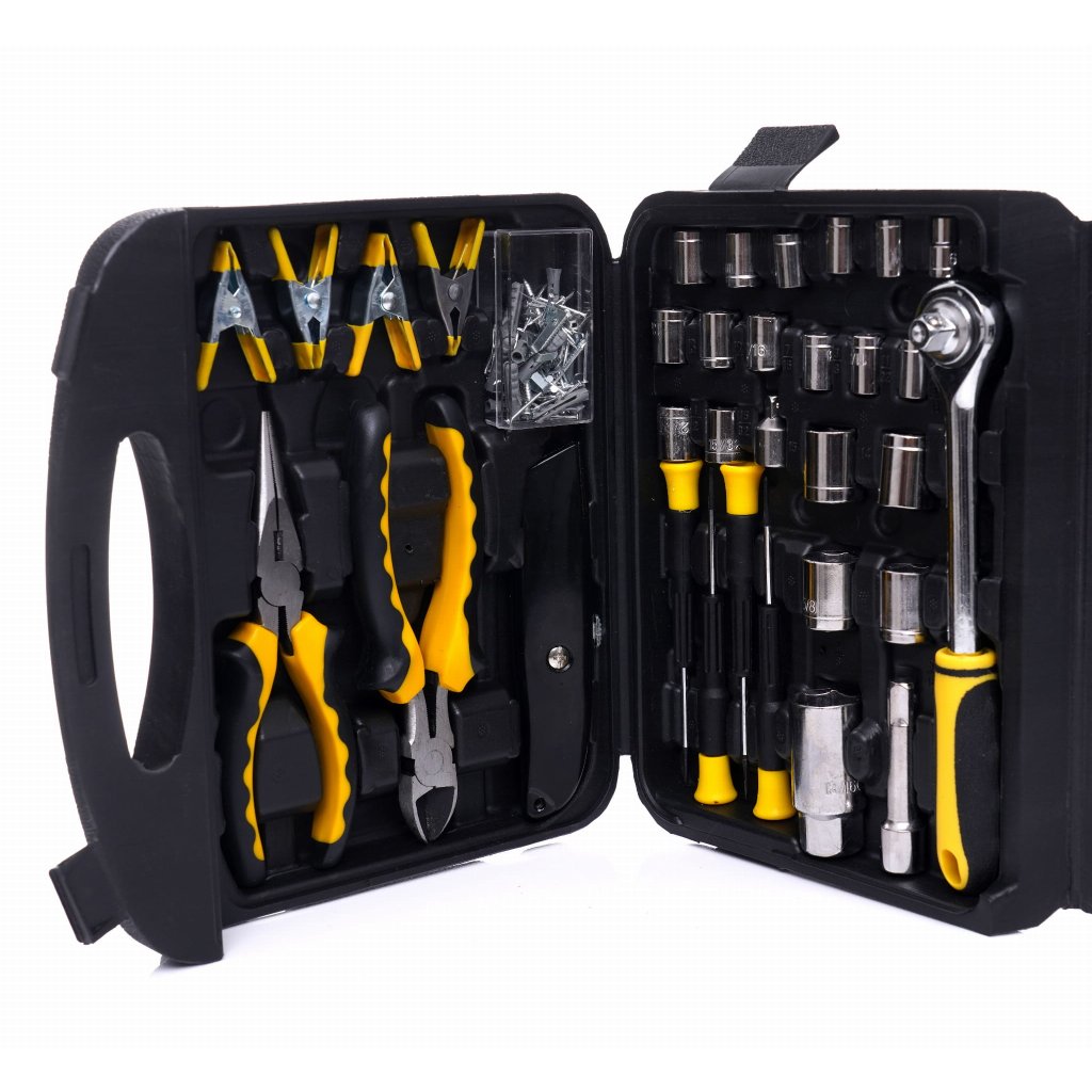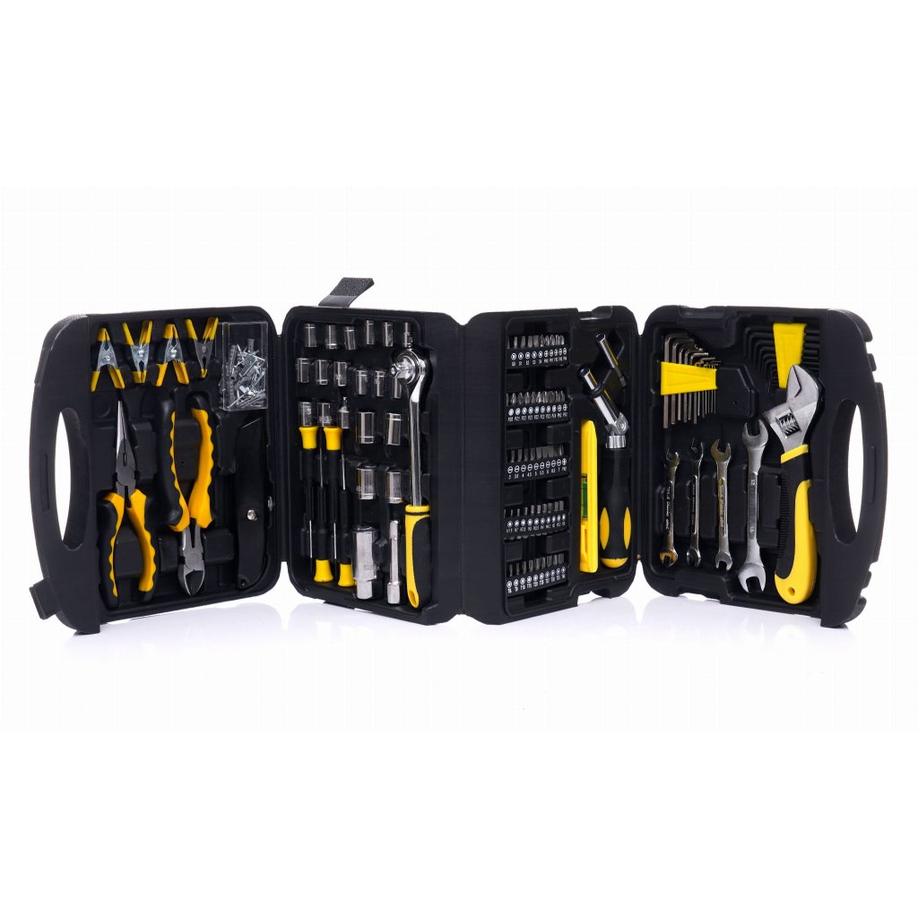 Pokud hledáte kompletní sadu nářadí, která vám usnadní práci, pak je tato sada v kufříku ideální volbou. Obsahuje 117 různých nástrojů a díky chrom-vanadiové oceli je vše velmi odolné. Kufřík je navržen tak, aby byl ergonomický a snadno přenosný. Ušetříte čas díky snadnému přístupu k nástrojům a všechny komponenty jsou prakticky organizované.