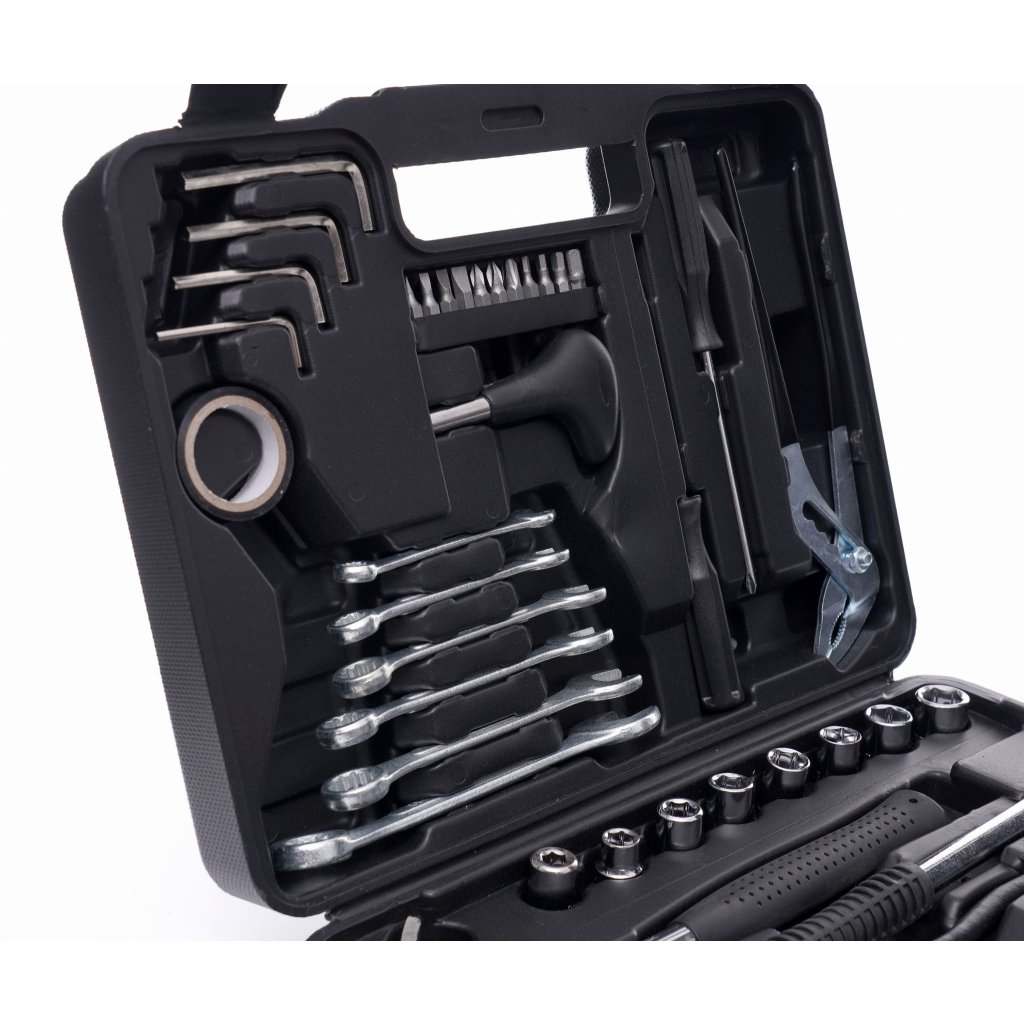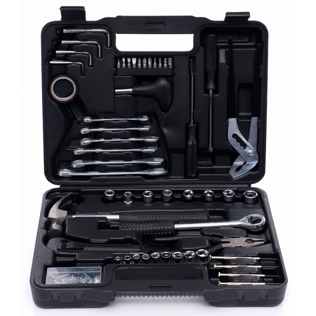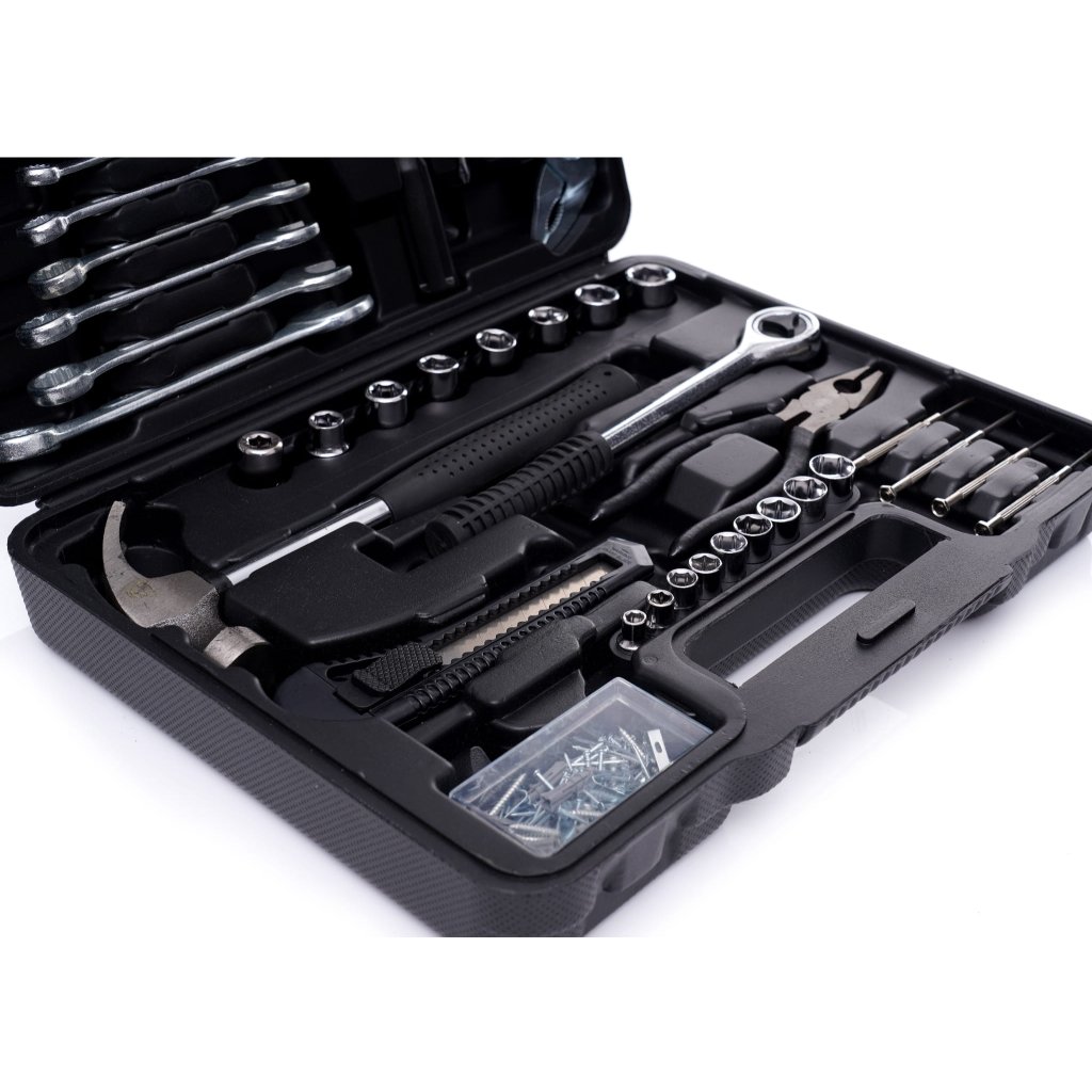 - Hmotnost zestawu ok. 6 kg SKŁAD ZESTAWU ✅ Klucze HEX: 3, 4, 5, 6 mm ✅ Klucze płaskooczkowe: 8", 10", 12", 13", 14", 15" ✅ Nasadki 1/4": 5 – 13 mm ✅ Nasadki 3/8": 10 – 17 mm ✅ Kombinerki 6" ✅ Bity płaskie 25 mm: 4, 5, 6, 7 ✅ Bity Philips: PH1, PH2, PH3 ✅ Bity Pozi: PZ1, PZ2, PZ3 ✅ Wkrętaki 5,5 x 10 mm: płaski i krzyżakowy ✅ Wkrętaki precyzyjne: płaski i krzyżakowy ✅ Nóż uniwersalny ✅ Klucz grzechotkowy 3/8" ✅ Taśma izolacyjna ✅ 90 ks. gwoździ i kołków ✅ Młotek do gwoździ 8" ✅ Wkrętak do bitów ✅ Klucz nastawny do rur 9" ✅ Adapter do nasadek 1/4" ✅ Wytrzymała walizka transportowa